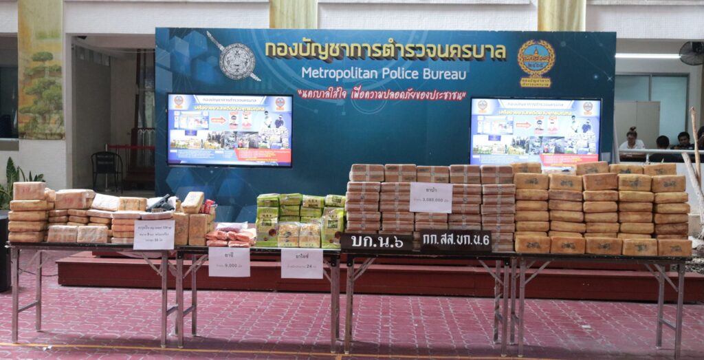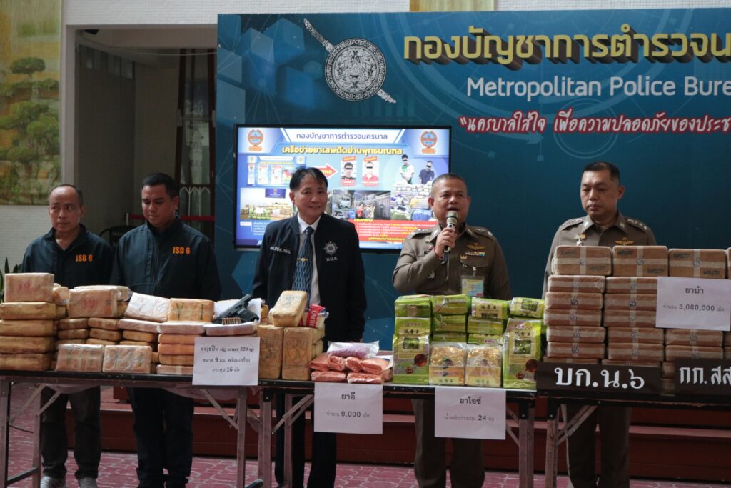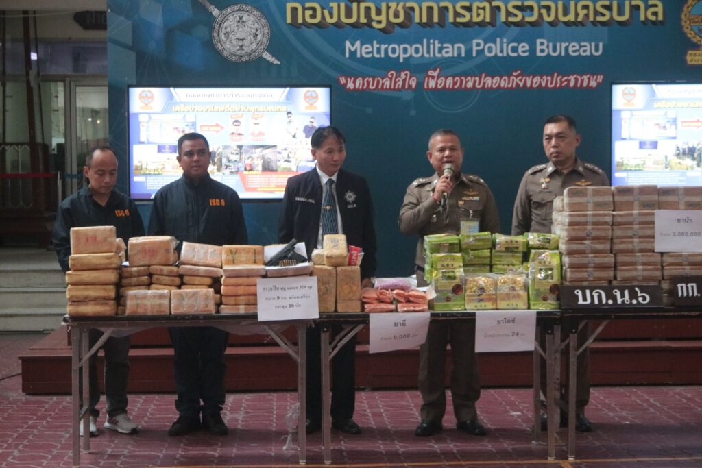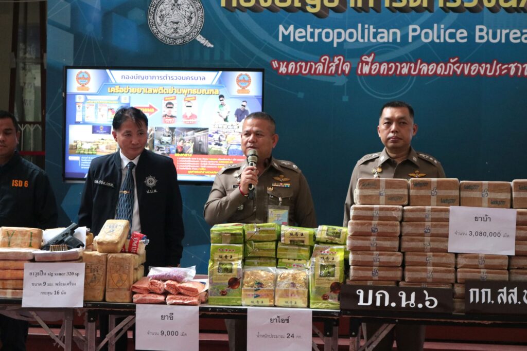กองบัญชาการตำรวจนครบาล โดย พล.ต.ท.ธิติ แสงสว่าง ผบช.น.,พล.ต.ต.นพศิลป์ พูลสวัสดิ์ รอง ผบช.น.,พล.ต.ต.ทินกร รังมาตย์ รอง ผบช.น.,พ.ต.อ.สามารถ พรหมชาติ รอง ผบก.น.8 รรท.ผบก.น.6,พ.ต.อ.นริศ ปรารถนาพร รอง ผบก.น.6 ได้สั่งการให้ พ.ต.อ.เชิดศักดิ์ รอดเข็ม ผกก.กก.สส.บก.น.6,พ.ต.ท.วิสิทธิ์ สายบัวทอง รอง ผกก.กก.สส.บก.น.6,พ.ต.ต.ปัณณวัชร์ จิรัฐธรรมฤทธิ์ สว.กก.สส.บก.น.6 เจ้าหน้าที่ตำรวจชุดปฏิบัติการยาเสพติด กองบังคับการตำรวจนครบาล 6 ทำการสืบสวนขยายผลผู้ต้องหาคดียาเสพติดรายใหญ่ รายสำคัญ จึงได้ทำการจับกุมตัว 1.นายต้นฯ อายุ 24 ปี ภูมิลำเนา ตำบลป่าตึง อำเภอแม่จัน จังหวัดเชียงราย,2.นายณรงค์เกียรติฯ อายุ 25 ปี ภูมิลำเนา ตำบลดอนเจดีย์ อำเภอดอนเจดีย์ จังหวัดสุพรรณบุรี