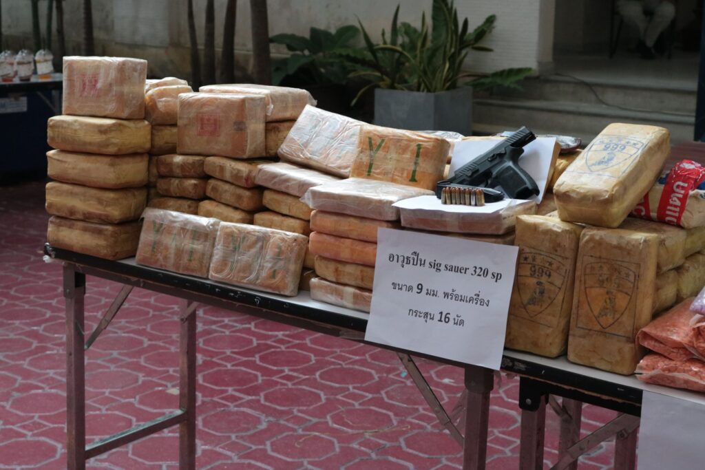 พร้อมด้วยของกลาง อาวุธปืนพกสั้น ยี่ห้อ ซิกซาวเออร์ ขนาด 9 มม. จำนวน 1 กระบอก พร้อมแม็กกาซีน 1 แม็ก (บรรจุกระสุนจำนวน 16 นัด),ยาเสพติดให้โทษประเภท 1 (ยาบ้า) รวมประมาณ 3,080,000 เม็ด,ยาเสพติดให้โทษประเภท 1 (ไอซ์) น้ำหนักรวมประมาณ 24 กิโลกรัม,ยาเสพติดให้โทษประเภท 1 (ยาอี) รวมประมาณ 9,000 เม็ด,โทรศัพท์มือถือ จำนวน 2 เครื่อง