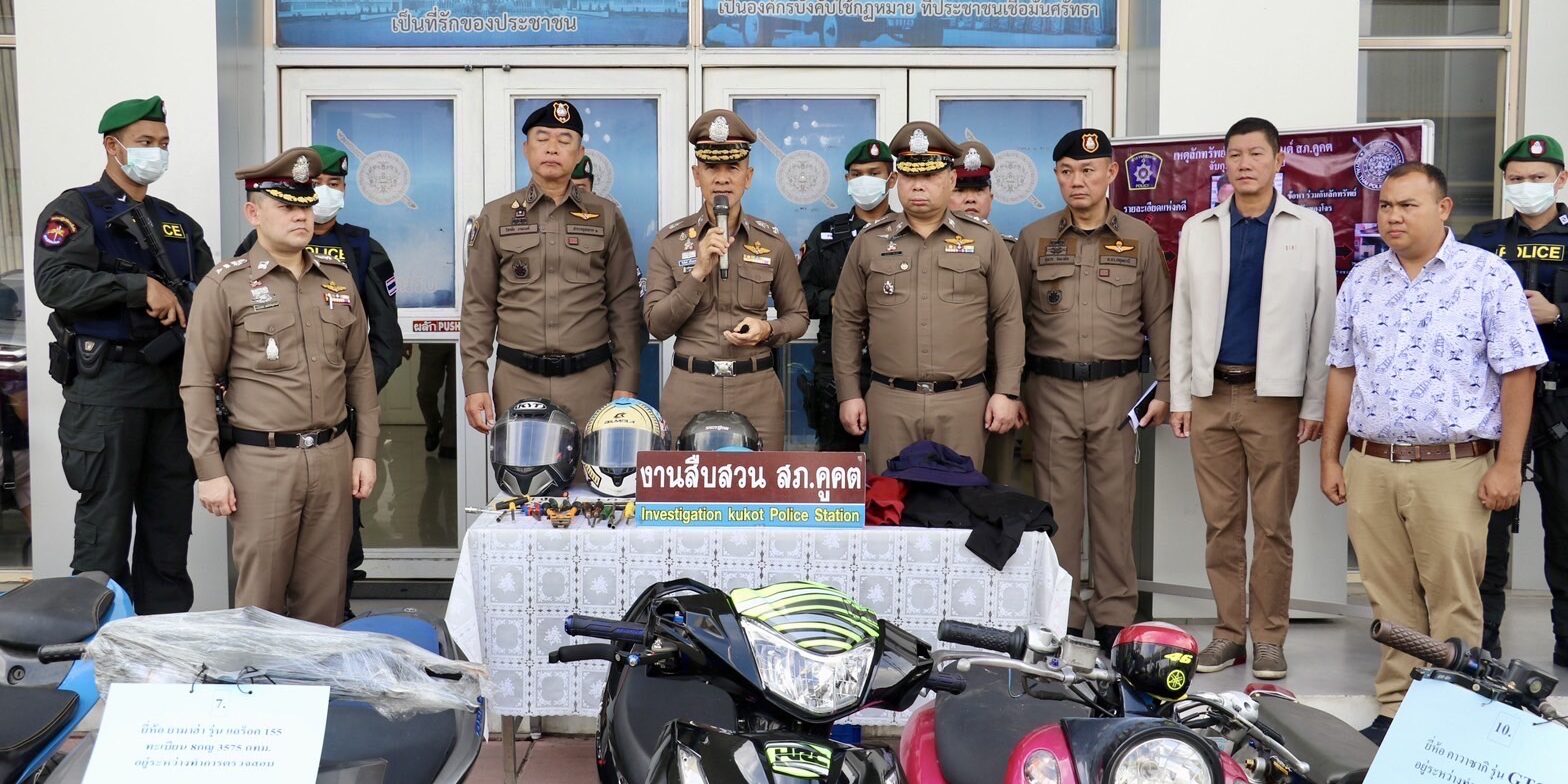 เมื่อวันที่ 30 ต.ค.2566 เวลาประมาณ 01.00 น. ได้รับแจ้งเหตุมีคนร้ายก่อเหตุลักรถจักรยานยนต์ที่จอดไว้หน้าหอพักทรัพย์ประดิษฐ์ ต.ลาดสวาย อ.ลำลูกกา จ.ปทุมธานี เจ้าหน้าที่ตำรวจ สภ.คูคต จึงได้ติดตามสืบสวนจากกล้องวงจรปิดจนทราบว่าคนร้ายได้หลบหนีและหลบซ่อนตัวอยู่ในพื้นที่เขตลำผักชี กรุงเทพมหานคร ต่อมาวันที่ 9 พ.ย.2566 เจ้าหน้าที่ตำรวจจึงได้ขออนุมัติหมายค้นจากศาลอาญามีนบุรี และได้เข้าทำการตรวจค้นตามหมาย พบผู้ต้องหาคือ นายศรุต หรือฮิว (ขอสงวนนามสกุล) และ นายภัทรพงศ์ หรือโก้ (ขอสงวนนามสกุล) พร้อมด้วยของกลางจำนวนหลายรายการ ได้แก่ รถจักรยานยนต์ จำนวน 11 คัน ซึ่งเป็นรถได้มาจากการก่อเหตุลักทรัพย์ในหลายพื้นที่,โครงรถจักรยานยนต์ จำนวน 3 โครง,เครื่องรถจักรยานยนต์ จำนวน 2 เครื่อง นอกจากนี้ยังตรวจยึดอุปกรณ์ส่วนควบและเครื่องมือที่ใช้ในก่อเหตุกระทำความผิด เจ้าหน้าที่ตำรวจ สภ.คูคต จึงได้ทำการจับกุมและแจ้งข้อหา นายศรุต หรือฮิว (ขอสงวนนามสกุล) และ นายภัทรพงศ์ หรือโก้ (ขอสงวนนามสกุล) ในฐานความผิด “ร่วมกันลักทรัพย์หรือรับของโจร” จากการสอบสวนเบื้องต้นผู้ต้องหาทั้งสองให้การรับว่า ได้ร่วมกันก่อเหตุลักรถเช่นนี้มานานแล้วประมาณ 5-6 เดือน โดยจะตระเวนก่อเหตุในเขตจังหวัดปทุมธานี พื้นที่ สภ.คูคต สภ.ประตูน้ำจุฬาลงกรณ์ และเขตกรุงเทพมหานคร ในพื้นที่
