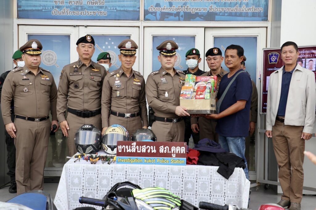ร่วมแถลงข่าว คดีลักทรัพย์รถจักรยานยนต์ หลายท้องที่ ตำรวจภูธรภาค1 ต่อเนื่องนครบาล ณ สภ.คูคต ต.คูคต อ.ลำลูกกา จ.ปทุมธานี เพื่อให้เป็นไปตามนโยบายของสำนักงานตำรวจแห่งชาติ ในการเร่งรัดขับเคลื่อนการปราบปราม การกระทำความผิดอาญาในลักษณะต่างๆ เพื่อพิทักษ์รักษาทรัพย์สิน และดูแลความปลอดภัยให้กับประชาชน