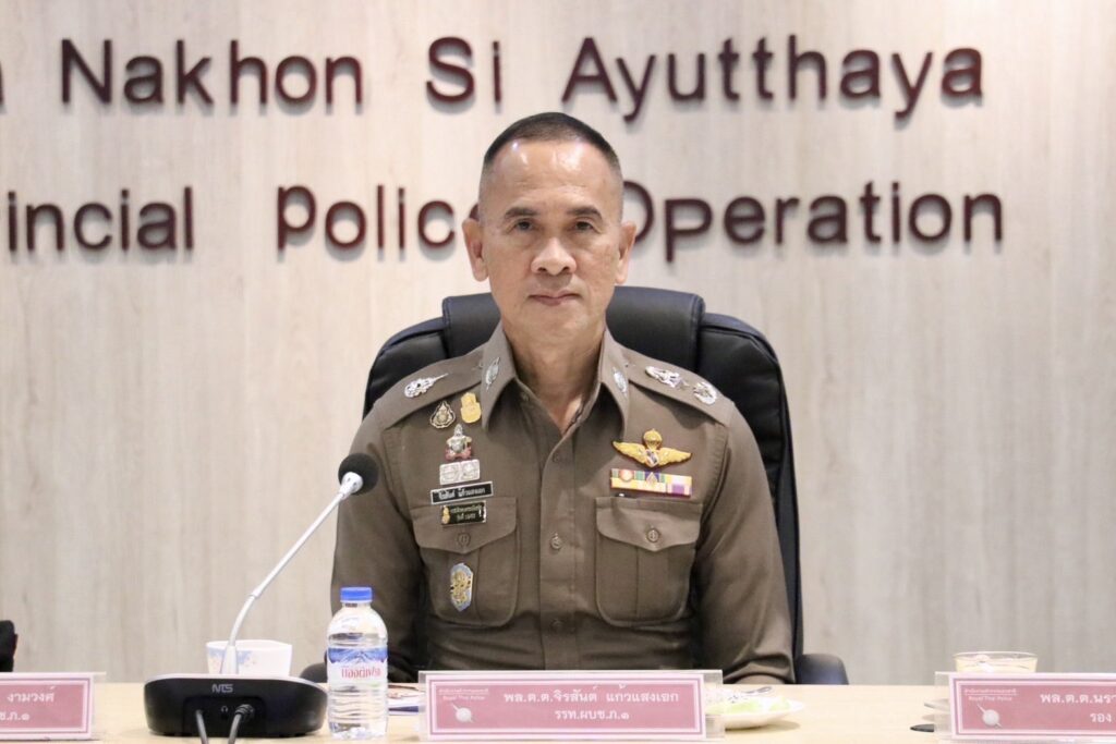 กองบัญชาการตำรวจภูธรภาค 1 โดย พล.ต.ต.จิรสันต์ แก้วแสงเอก รรท.ผบช.ภ.1 พล.ต.ต.โชคชัย งามวงศ์ รอง ผบช.ภ.1 และ พล.ต.ต.นราเดช ทิพย์รักษ์ รอง ผบช.ภ.1 ตำรวจภูธรจังหวัดพระนครศรีอยุธยา พ.ต.อ.โชติวัฒน์ เหลืองวิลัย รรท.ผบก.ภ.จว.พระนครศรีอยุธยา, พ.ต.อ.ธีรวุฒิ แสงมณี รอง ผบก.ภ.จ.พระนครศรีอยุธยา, พ.ต.อ.เอกราช อุ่นเจริญ รอง ผบก.ภ.จ.สิงห์บุรี ได้แถลงผลการปฏิบัติตามนโยบายของสำนักงานตำรวจแห่งชาติ ด้านการรักษาความสงบเรียบร้อยและการป้องกันอาชญากรรม โดยสามารถจับกุมผู้ต้องหาที่กระทำความผิด เกี่ยวกับทรัพย์พร้อมของกลาง จำนวน 13 ราย ดังนี้