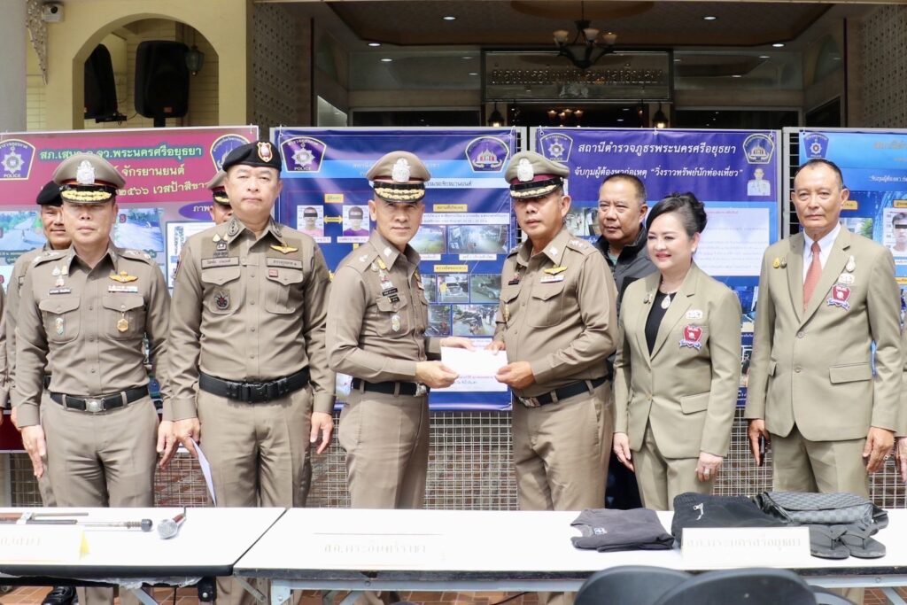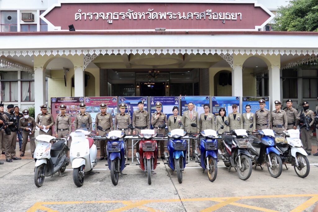 ร่วมแถลงข่าว คดีลักทรัพย์รถจักรยานยนต์และวิ่งราวทรัพย์นักท่องเที่ยวในพื้นที่ จ.พระนครศรีอยุธยา ณ ภ.จ.พระนครศรีอยุธยา ต.ประตูชัย อ.พระนครศรีอยุธยา จว.พระนครศรีอยุธยา
