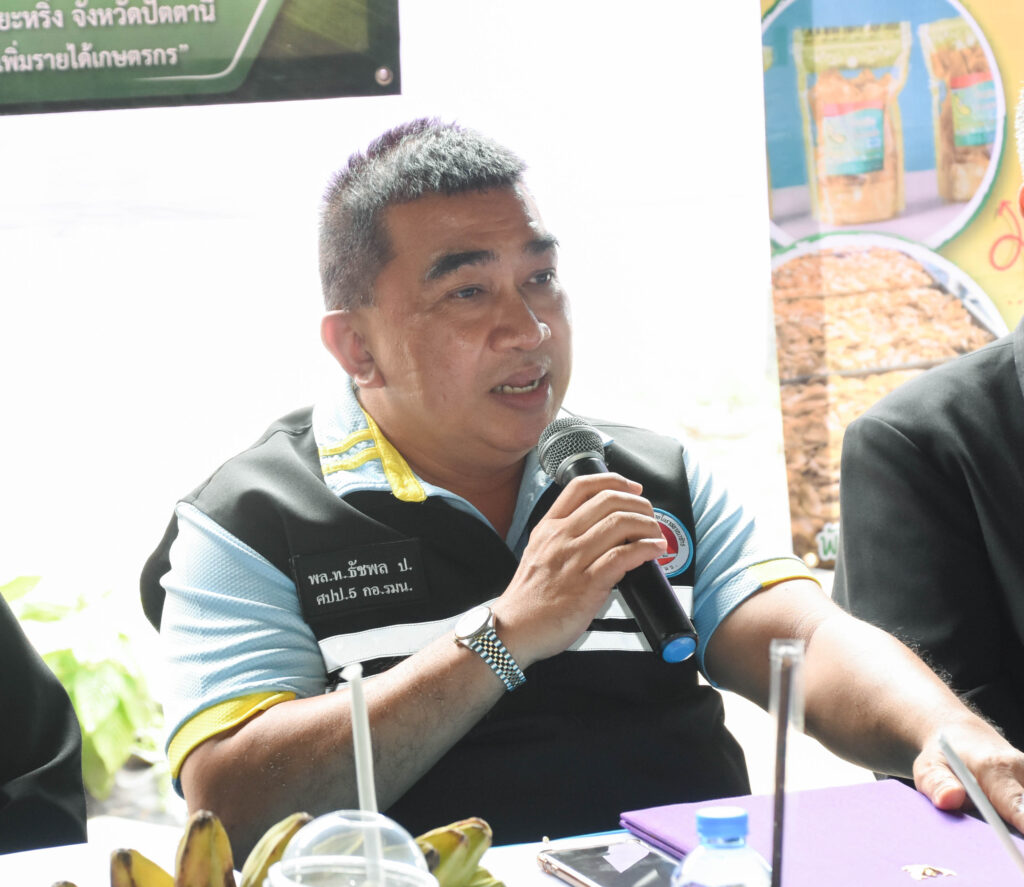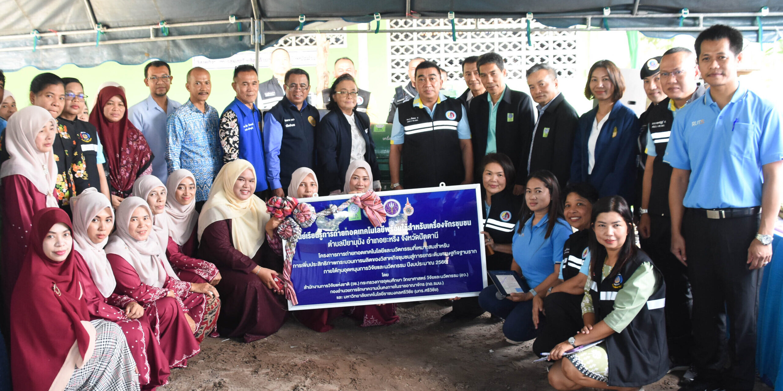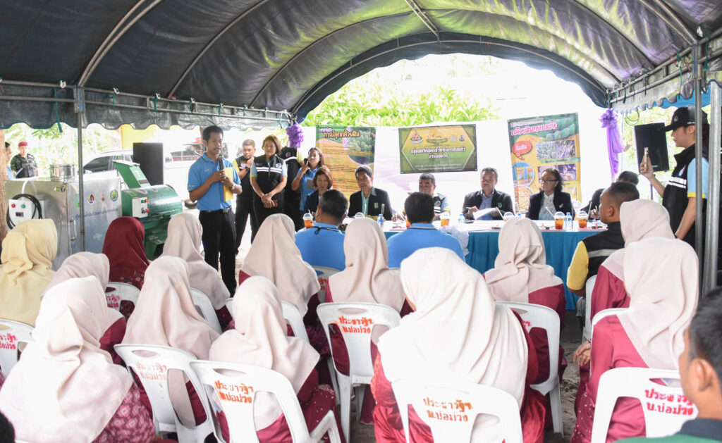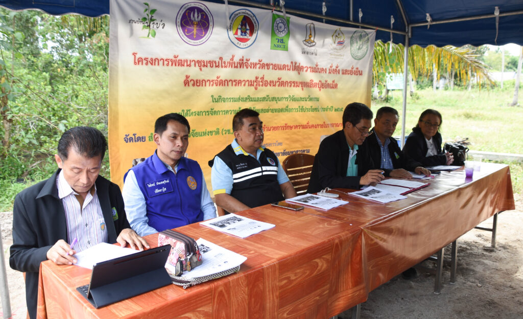 นอกจากนี้ ในวันเดียวกันยังส่งมอบนวัตกรรมจากงานวิจัย ชุดอุปกรณ์ผลิตปุ๋ยอัดเม็ด ให้แก่วิสาหกิจชุมชนเกษตรผสมผสาน และวิสาหกิจชุมชนกลุ่มเลี้ยงโคเนื้อต้นน้ำ ณ วิสาหกิจชุมชนเกษตรผสมผสาน อำเภอปะนาเระ จังหวัดปัตตานี ซึ่งนวัตกรรมดังกล่าว (วช.) ได้สนับสนุนกิจกรรมส่งเสริมการวิจัยและนวัตกรรม ให้กับ มหาวิทยาลัยมหาสารคาม โดย ผศ.ดร.ณัฐพล ภูมิสะอาด เป็นหัวหน้าโครงการ นวัตกรรมดังกล่าวสามารถลดปัญหาปริมาณมูลโคและนำวัสดุเหลือใช้มาทำให้เกิดประโยชน์ และการถ่ายทอดองค์ความรู้และเทคโนโลยีปุ๋ยอัดเม็ด ก่อให้เกิดการนำไปใช้ประโยชน์จริงสร้างรายได้และลดต้นทุนการทำเกษตรกรรม เสริมสร้างความเข้มแข็งและความมั่นคงและการประกอบอาชีพให้แก่กลุ่มเป้าหมาย เกิดการพึ่งพาและการจัดการด้วยตนเองอย่างเป็นระบบ