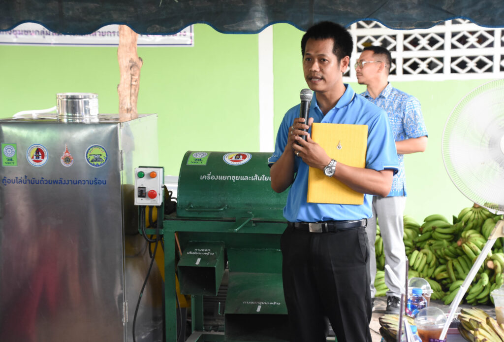 เมื่อวันที่ 8 พฤศจิกายน 2566 ที่ผ่านมา สำนักงานการวิจัยแห่งชาติ (วช.) กระทรวงการอุดมศึกษา วิทยาศาสตร์ วิจัยและนวัตกรรม (อว.) โดย ดร.วิภารัตน์ ดีอ่อง ผู้อำนวยการสำนักงานการวิจัยแห่งชาติ (ผอ.วช.) มอบหมายให้ นายธีรวัฒน์ บุญสม ผู้อำนวยการกองส่งเสริมและสนับสนุนการวิจัยและนวัตกรรม พร้อมด้วยคณะผู้ทรงคุณวุฒิ และ พล.ท.ธัชพล เปี่ยมวุฒิ ผู้อำนวยการศูนย์ประสานการปฏิบัติที่ 5 กอ.รมน. เป็นผู้แทน ส่งมอบนวัตกรรมจากงานวิจัย ได้แก่ เครื่องสไลด์กล้วย ตู้อบไล่น้ำมัน เครื่องแยกขุยและเส้นใยเปลือกมะพร้าว ให้แก่วิสาหกิจชุมชนกลุ่มสตรีผลิตกล้วยกรอบแก้ว ณ วิสาหกิจชุมชนกลุ่มสตรีผลิตกล้วยกรอบแก้ว ซึ่งนวัตกรรมดังกล่าว (วช.) ได้สนับสนุนกิจกรรมส่งเสริมการวิจัยและนวัตกรรม ให้กับ มหาวิทยาลัยเทคโนโลยีราชมงคลศรีวิชัย โดย รศ.วรพงค์ บุญช่วยแทน เป็นหัวหน้าโครงการ ซึ่งนวัตกรรมดังกล่าวเป็นการยกระดับกระบวนการผลิตด้วยเทคโนโลยีพร้อมใช้ พัฒนาความเป็นมืออาชีพในการยกระดับขีดความสามารถในการแข่งขัน นำไปสู่การพัฒนาธุรกิจไปสู่การพัฒนาผู้ประกอบการให้เป็นผู้ประกอบการทางเทคโนโลยีและนวัตกรรม เป็นการส่งเสริมสร้างความเข้มแข็งของเศรษฐกิจในเชิงสร้างสรรค์ เป็นการยกระดับความสามารถในการแข่งขันได้