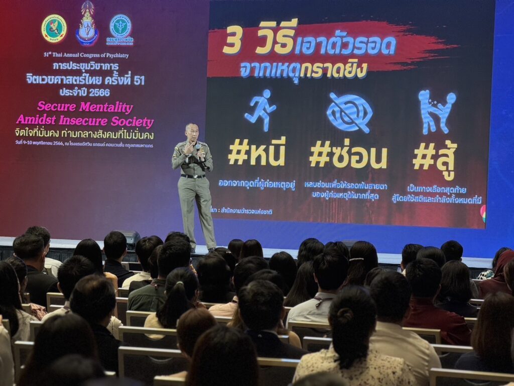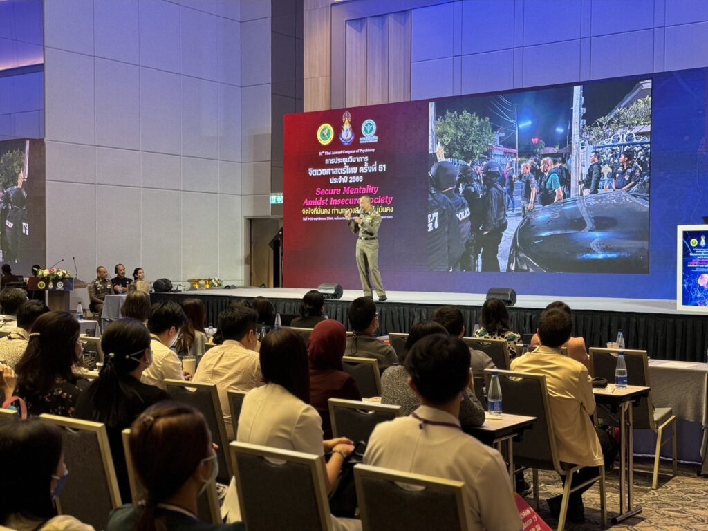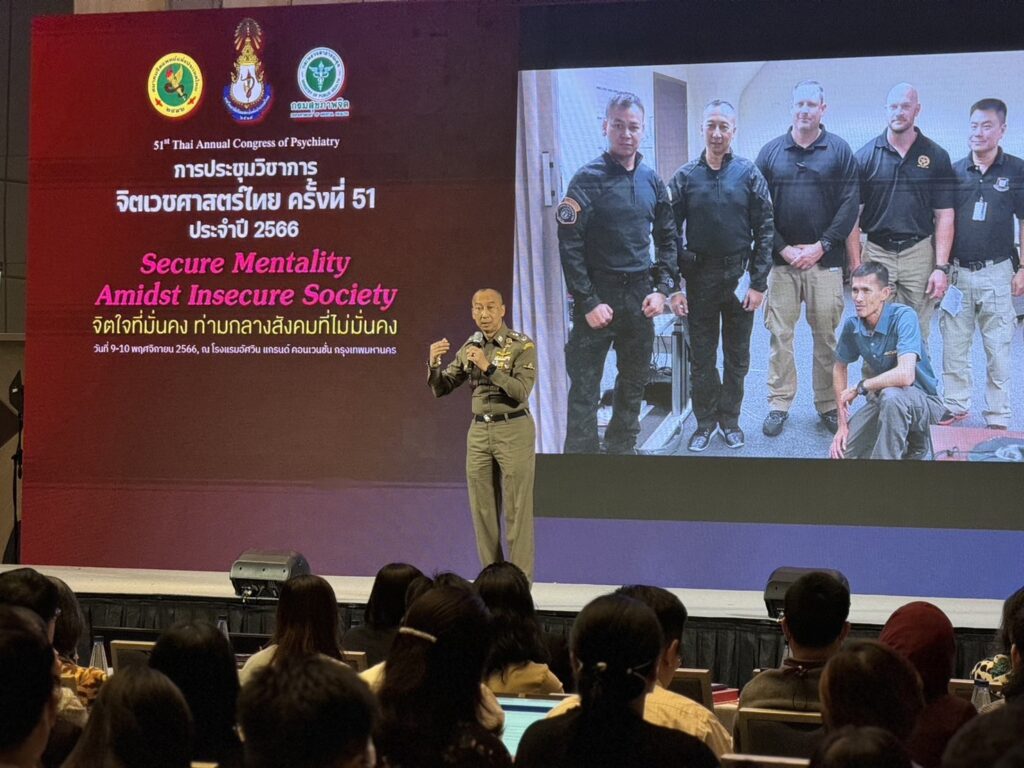 วันที่ 10 พ.ย.2566 : พ.ต.อ.ศิริวัฒน์ ดีพอ รองโฆษกสำนักงานตำรวจแห่งชาติ เปิดเผยว่า เมื่อวานนี้ (9 พ.ย.2566) พล.ต.อ.ต่อศักดิ์ สุขวิมล ผู้บัญชาการตำรวจแห่งชาติ (ผบ.ตร.) ร่วมให้เกียรติบรรยายในหัวข้อ ”ยุทธวิธีและการบริหารเหตุวิกฤต“ ให้กับบุคคลาการ สมาชิกจิตแพทย์, แพทย์ประจำบ้าน ในการประชุมวิชาการประจำปีจิตเวชศาสตร์ไทย ครั้งที่ 51 ประจำปี 2566 (51st Thai Annual Congress of Psychiatry,51st TACP) จัดโดยราชวิทยาลัยจิตแพทย์แห่งประเทศไทย,สมาคมจิตแพทย์แห่งประเทศไทย และกรมสุขภาพจิต กระทรวงสาธารณสุข ในระหว่างวันที่ 9-10 พฤศจิกายน 2566 ณ โรงแรมอัศวิน แกรนด์ คอนเวนชั่น กรุงเทพมหานคร