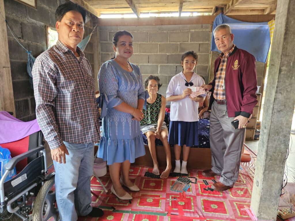 นอกจากนี้ พันตรีศิริชัย ทรัพย์ศิริ กรรมการอำนวยการ สภาสังคมสงเคราะห์ฯ พร้อมด้วย ผอ.โรงเรียนบ้านหนองหัวช้าง, อ.นราวัตร กาญจนพันธ์ ผู้ประสานงาน และ คณะครู ยังได้ร่วมตรวจเยี่ยมให้กำลังใจครอบครัวของ เด็กหญิงปัณฑิตา บุญประดิษฐ นักเรียนชั้นประถมปีที่ 6 โรงเรียนบ้านหนองหัวช้าง ที่ความกตัญญูต่อบุพการีช่วยเหลือดูแล นางมาลี คงดารา (คนพิการ) คุณย่า ซึ่งเป็นผู้ป่วยติดเตียง โดยต้องมาช่วยครอบครัวป้อนอาหารให้กับคุณย่าที่ป่วยติดเตียงในช่วงพักเที่ยง