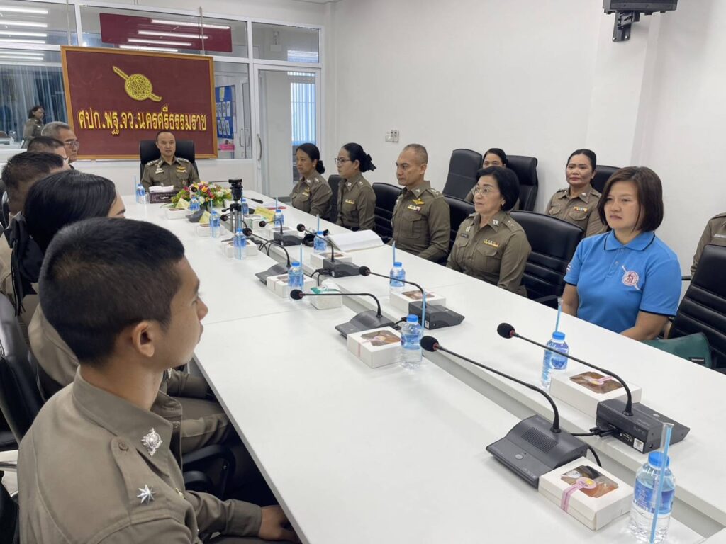 โดยมี พ.ต.อ.หญิง อมรรัตน์ พลเกษตร นวท.(สบ 4) พฐ.จ.นครศรีธรรมราช และข้าราชการตำรวจในสังกัดให้การต้อนรับ และได้เข้าร่วมประชุม รับฟังบรรยายสรุปเหตุการณ์ต่างๆ ที่เกิดขึ้นในพื้นที่ รับฟังปัญหาข้อขัดข้องในการปฏิบัติงาน และได้มอบนโนบาย แนวทางในการปฏิบัติงาน หลังจากนั้นได้มอบถุงยังชีพจาก”มูลนิธิพระราหู”เพื่อเป็นขวัญและกำลังใจให้กับกำลังพลต่อไป