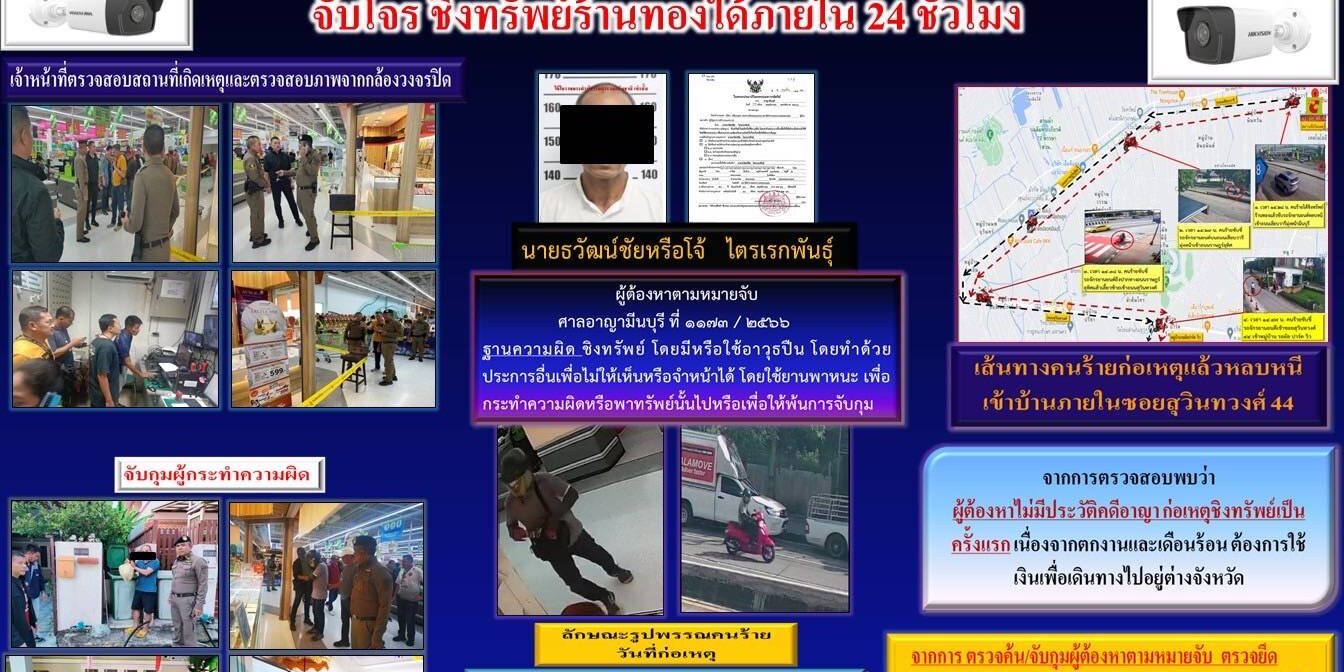 จากการสืบสวนทราบว่าคนร้ายที่ก่อเหตุชิงทรัพย์คือ นายธวัฒน์ชัย ไตรเรกพันธุ์