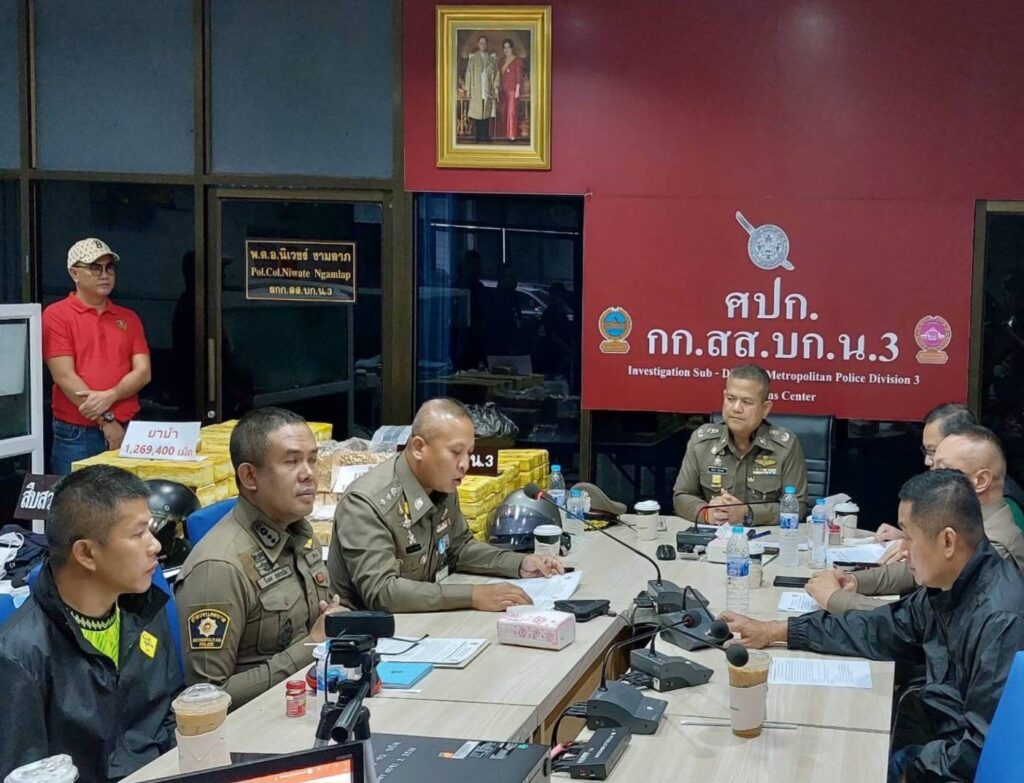 วันที่ 12 พ.ย.2566 เวลา 10.00 น. ณ ห้องประชุม กก.สส.บก.น.3 โดยพล.ต.ต.ทินกร รังมาตย์ รอง ผบช.น.ให้เกียรติมาประธานฯ พร้อมด้วย พ.ต.อ.เกียรติกุล สนธิเณร รรท.ผบก.น. 3,พ.ต.อ.ถนัด นักธรรม รอง ผบก.น.3,พ.ต.อ.ชนะวรศิณธุ์ ศุภพนารักษ์ รอง ผบก.น.3,พ.ต.อ.ยิ่งยศ สุวรรณโณ ผกก.สน.หนองจอก,พ.ต.อ.นิเวชร์ งามลาภ ผกก.สส.บก.น.3,พ.ต.ท.อธิช์ลักษณ์ สาระศาลิน รอง ผกก.สส.สน. หนองจอก,พ.ต.ท.ชัยธัช เชียงทา รอง ผกก.สส.สน.ลำผักชี รวมทั้ง เจ้าหน้าที่ตำรวจฝ่ายสืบสวน สน.หนองจอก สน.ลำผักชี และ กก.สส.บก.น.3 ร่วมแถลงข่าวจับกุม นายธวัฒน์ชัย ไตรเรกพันธุ์ อายุ 54 ปี อดีต รปภ.โรงเรียนนานาชาติใช้กล่องยาสีฟันทำปืนปลอมก่อเหตุชิงทรัพย์ร้านทองออโรร่า สาขา ห้างสรรพสินค้าบิ๊กซีหนองจอก นอกจากนี้ คุณชาญณรงค์ ด้วงแก้ว ผู้ช่วยผู้จัดการฝ่ายกฎหมาย ห้างทองออโรร่า เป็นผู้แทนมามอบกระเช้าเพื่อแสดงความขอบคุณที่ตำรวจที่จับกุมคนร้ายที่ก่อเหตุรายนี้ได้อย่างรวดเร็วภายใน 24 ชั่วโมง