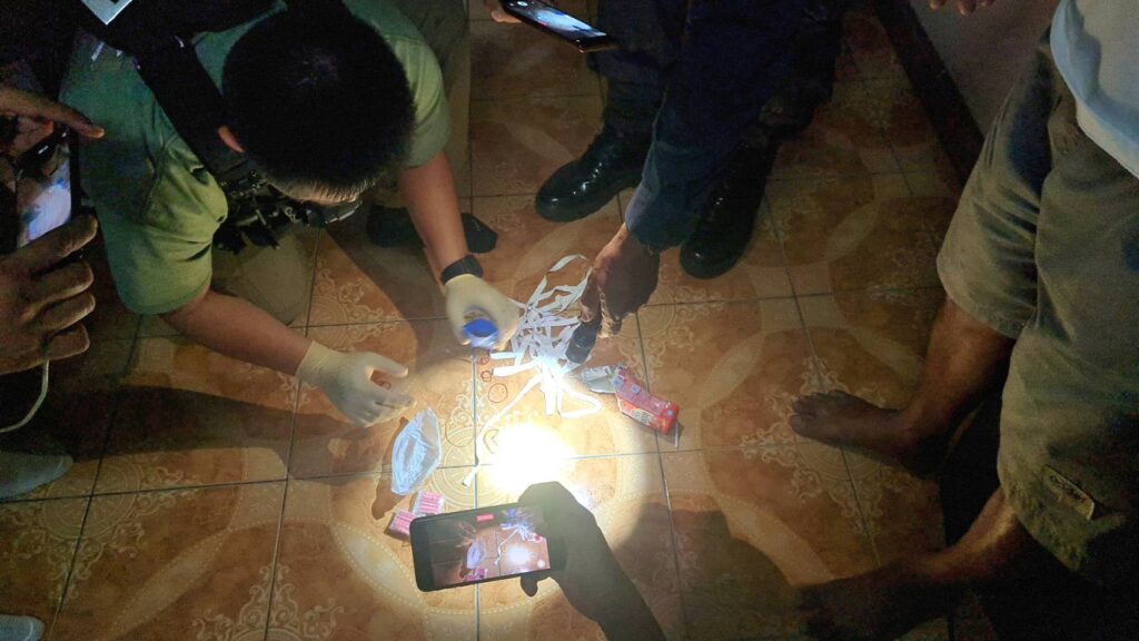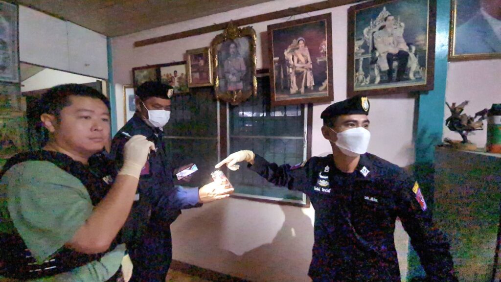 จากการตรวจค้นลักษณะเป็นบ้านพัก พื้นที่ 200 ตารางเมตร มีบ้านปลูกติดกัน รวม 3 หลัง โดยหลังแรก พบลูกกระสุนปืนขนาด 9 มม. จำนวน 19 นัด อยู่ภายในห้องของลูกเจ้าของบ้าน และเจ้าหน้าที่ใช้สุนัข K-9 ดมกลิ่น ที่บริเวณห้องพระและหลังตู้เย็น พบมีกล่องนมดัชมิลลักษณะเปิดฝาไว้มีเชือกผ้าสีขาวห่อหุ้ม ตรวจสอบภายในกล่องมียาเสพติด ยาบ้า 290 เม็ด จึงควบคุมตัวนายวิเชียร ธัญญเจริญ อายุ 55 ปีเจ้าของบ้าน ถูกนำตัวไปสอบสวน ส่วนจุดที่ 2 เป็นร้านนวดแผนโบราณ หลังรับแจ้งว่ามีการลักลอบเล่นการพนันแต่ไม่พบ