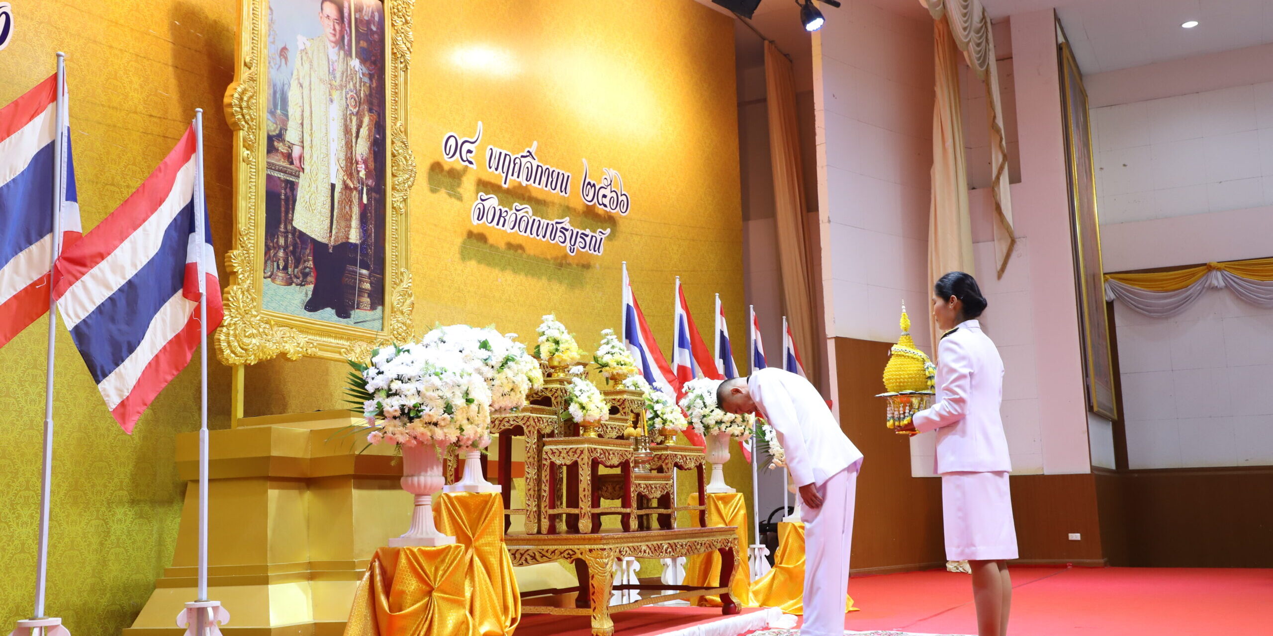 14 พฤศจิกายน 2566 เวลา 08.29 น. ที่หอประชุมศูนย์ราชการจังหวัดเพชรบูรณ์ นายกฤษณ์ คงเมือง ผู้ว่าราชการจังหวัดเพชรบูรณ์ เป็นประธานในพิธีวางพานพุ่มดอกไม้สด หน้าพระบรมฉายาลักษณ์พระบาทสมเด็จพระบรมชนกาธิเบศร มหาภูมิพลอดุลยเดชมหาราช บรมนาถบพิตร เนื่องในวันพระบิดาแห่งฝนหลวง ประจำปี 2566 โดยมี ตุลาการ อัยการ หัวหน้าส่วนราชการ ข้าราชการกระทรวงเกษตรและสหกรณ์ ทหาร ตำรวจ เจ้าหน้าที่ ประชาชน และนักเรียน นักศึกษา เข้าร่วม