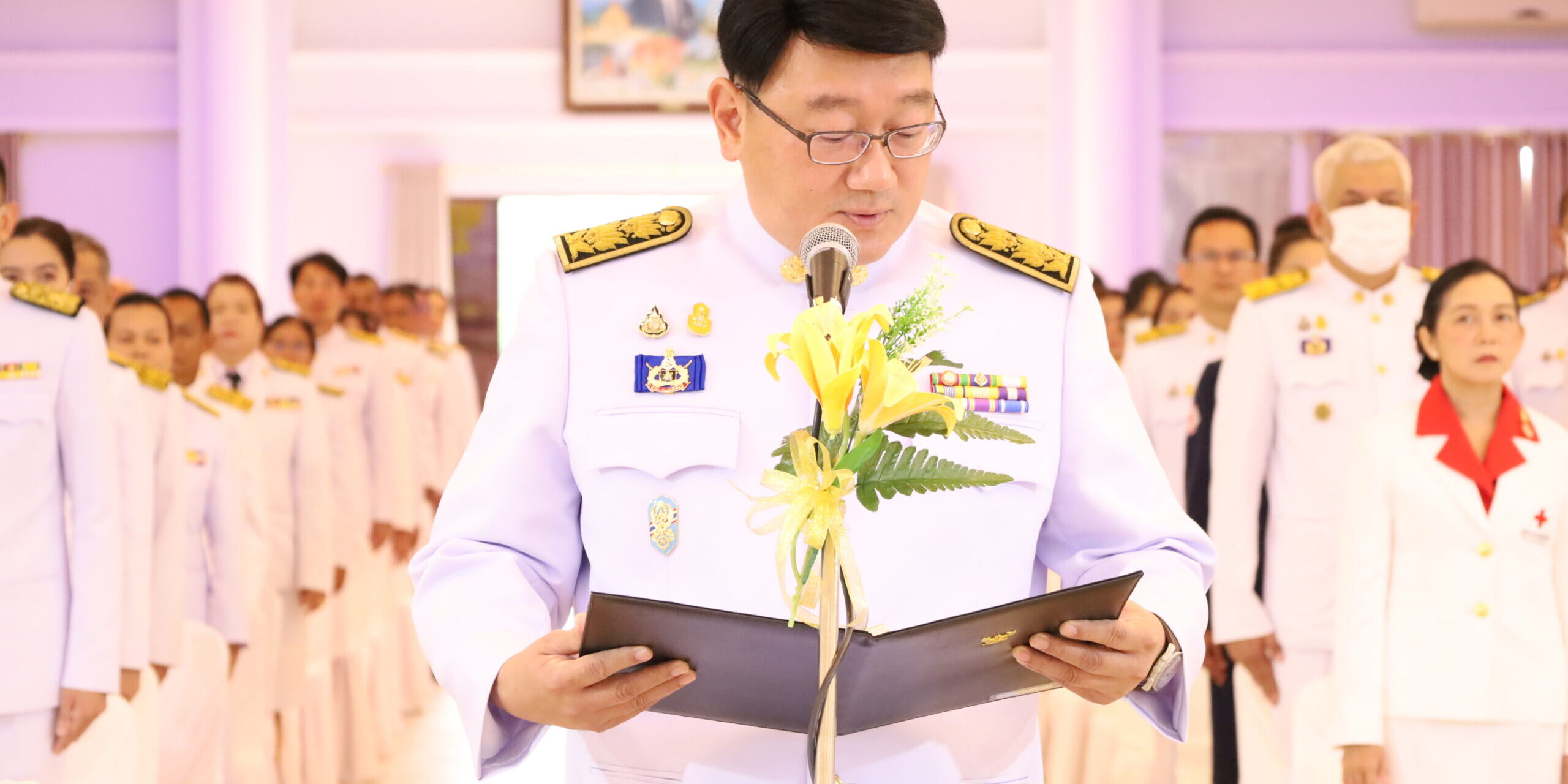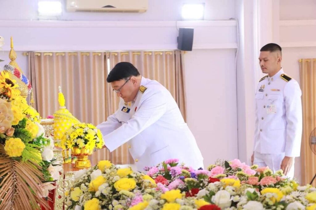 วันนี้ (14 พ.ย. 66) ที่อาคารเฉลิมพระเกียรติ 80 พรรษา ศาลากลางจังหวัดสตูล นายศักระ กปิลกาญจน์ ผู้ว่าราชการจังหวัดสตูล เป็นประธานพิธีวางพานพุ่มดอกไม้สด ถวายราชสักการะเบื้องหน้าพระบรมฉายาลักษณ์ พระบาทสมเด็จพระบรมชนกาธิเบศร มหาภูมิพลอดุลยเดชมหาราช บรมนาถบพิตร พร้อมกล่าวรำลึกในพระมหากรุณาธิคุณ เนื่องใน “วันพระบิดาแห่งฝนหลวง” ประจำปี 2566 โดยมี นายชาตรี ณ ถลาง รองผู้ว่าราชการจังหวัดสตูล นายชูชีพ ธรรมเพชร รองผู้ว่าราชการจังหวัดสตูล พร้อมด้วยหัวหน้าส่วนราชการ หน่วยงาน ตุลาการ ข้าราชการ ทหาร ตำรวจ หน่วยงานรัฐวิสาหกิจ องค์กรปกครองส่วนท้องถิ่น เข้าร่วมพิธีถวายราชสักการะวางพานพุ่มดอกไม้สด เพื่อเป็นการแสดงความจงรักภักดีและน้อมรำลึกในพระมหากรุณาธิคุณที่มีต่อพสกนิกรชาวไทย