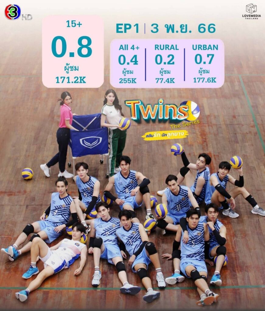 ถ้าพูดถึงกระแสของ “ซีรี่ส์วาย” ที่กำลังได้รับความนิยมอยู่ในขณะนี้ ต้องมีชื่อของซีรี่ส์วายส่งเสริมกีฬา “Twins The Series สลับรัก นักลูกยาง” ที่ออกอากาศทุกคืนวันศุกร์ เวลา 22.45 น. ทางช่อง 3HD รวมอยู่ด้วยแน่นอน แม้จะไม่ได้โชว์เรื่องราว “ความรัก” แบบโจ๊งครึ่ม หรือฉาก NC เร่าร้อน แต่ความน่ารักในแบบฉบับวายนั้นก็มีให้เห็นอยู่เรื่อยๆ แถมยังได้รับความรู้ด้านกีฬาวอลเล่ย์บอล และกีฬา ยูยิตสู ทำให้ซีรี่ส์วายเรื่องนี้ได้การตอบรับจากแฟนคลับ แฟนด้อม สาววาย หนุ่มวายอย่างท่วมท้น เพราะแค่เปิดฉาย EPแรก นั้นก็เรียกเรตติ้งได้ทั่วประเทศถึง 0.8 มีผู้ชมถึงราวๆ 171.2K ซึ่งหาได้ยากเหมือนกัน เพราะเป็นช่วงเวลาออกอากาศหลังสี่ทุ่มไปแล้ว นั่นหมายความว่า มีผู้ชมสนใจดูซีรี่ส์เรื่องนี้อยู่ไม่น้อย!!!