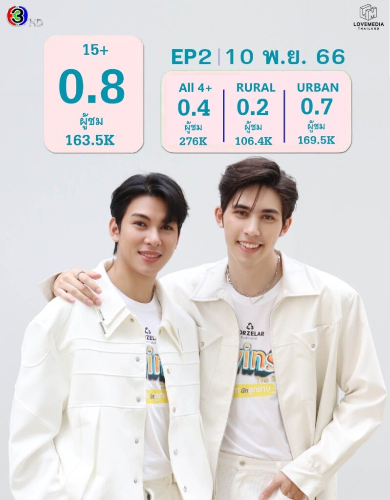 และนั่นส่งผลให้ EP2 ยังคงมีเรตติ้งที่ร้องว้าวว…ได้เลย เพราะยังคงที่ตัวเลข 0.8 มีผู้ชมกว่า 163.5K แต่ที่ว้าว..กว่าคือ ติดเทรน X (ทวิตเตอร์) ที่ได้รับความนิยมในไทย #TwinstheseriesEP2 อีกด้วย เรียกว่า ไม่ธรรมดาจริงๆ