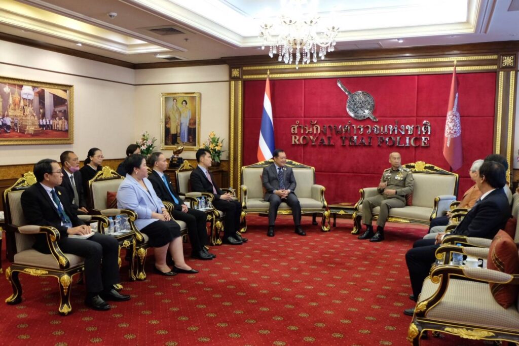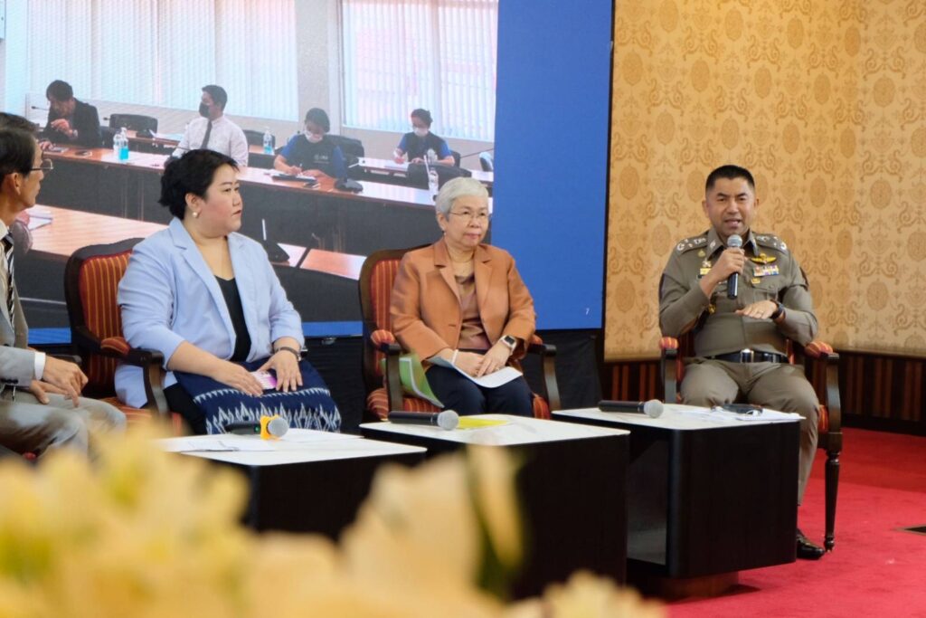 วันพฤหัสบดี ที่ 16 พฤศจิกายน พ.ศ.2566 พล.ต.อ.ต่อศักดิ์ สุขวิมล ผบ.ตร. เป็นประธานการแถลงข่าว ร่วมกับ พล.ต.อ.สุรเชษฐ์ หักพาล รอง ผบ.ตร., พ.ต.อ.ทวี สอดส่อง รัฐมนตรีว่าการกระทรวงยุติธรรม,ผศ.ดร.ปริญญา เทวานฤมิตรกุล แห่งศูนย์นิติศาสตร์ มหาวิทยาลัยธรรมศาสตร์,ผู้แทนคณะกรรมการสิทธิมนุษยชนแห่งชาติ,ผู้แทนจากกรมการจัดหางาน,ประธานกรรมการหอการค้าไทย และสภาหอการค้าแห่งประเทศไทย และประธานสภาอุตสาหกรรมแห่งประเทศไทย ณ ห้องสารสิน ชั้น 2 อาคาร 1 (ส่วนหน้า)