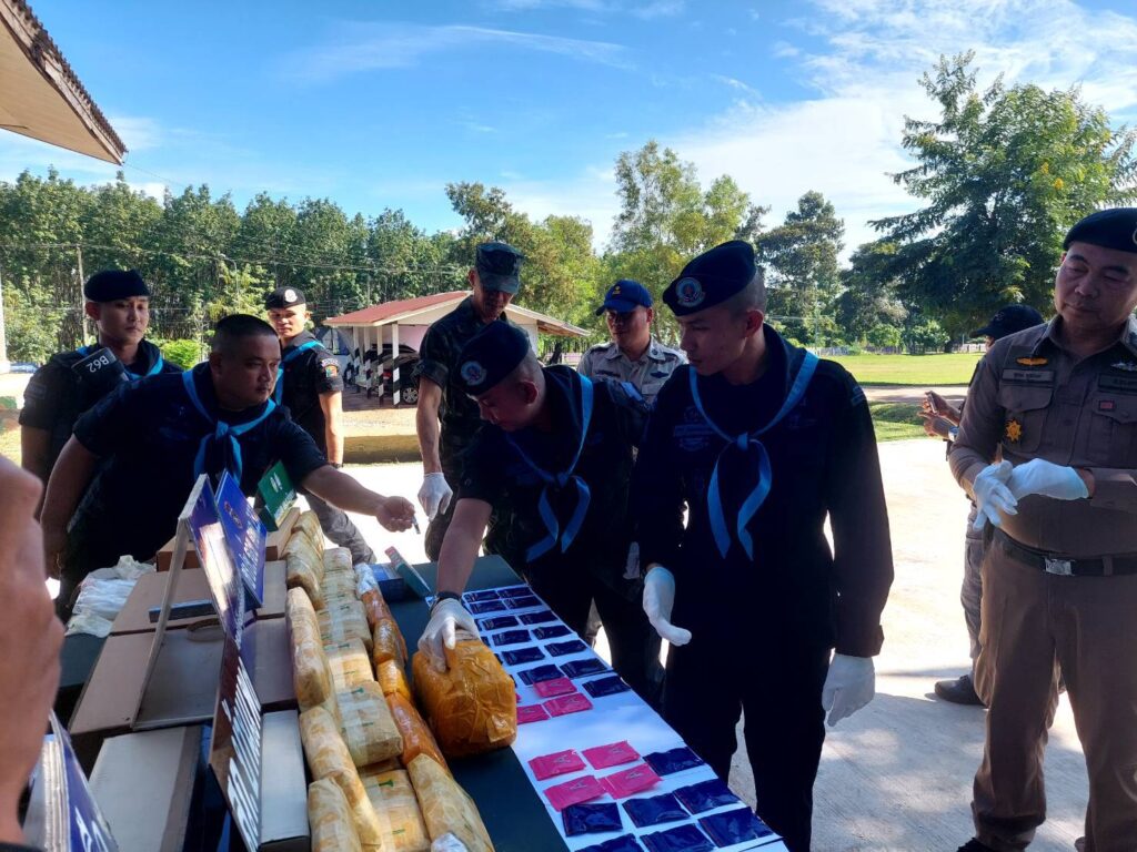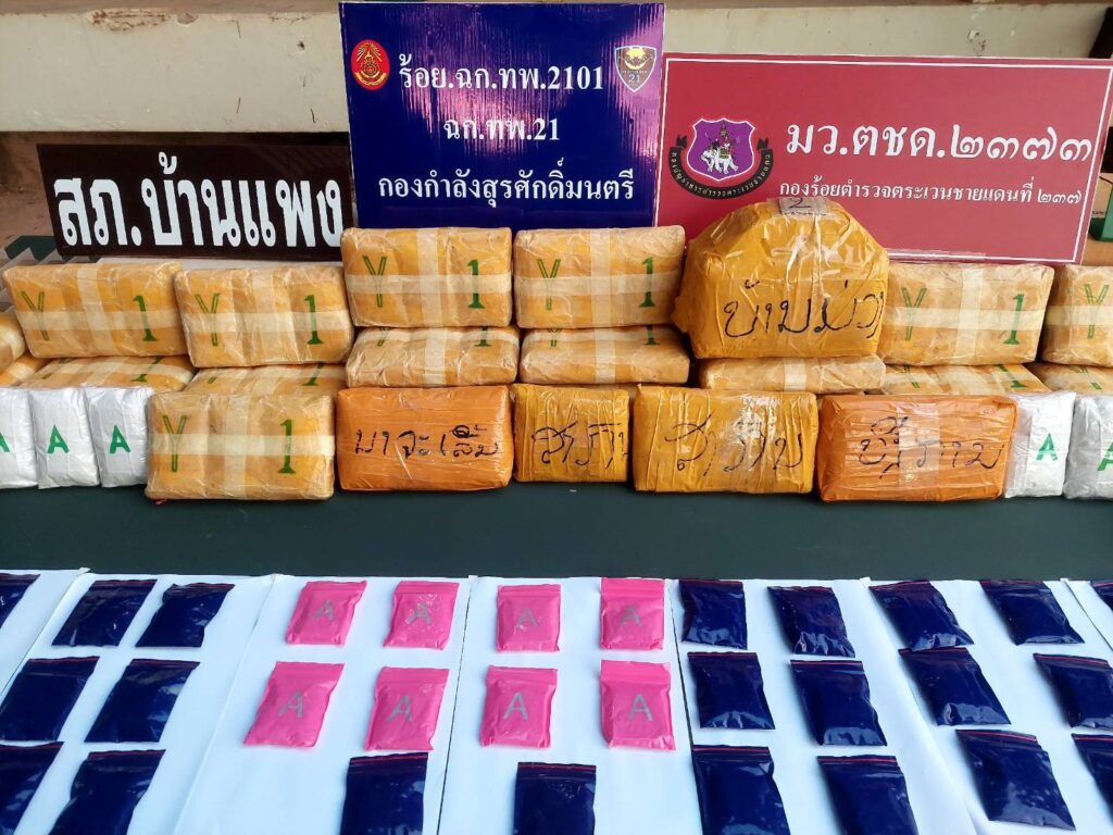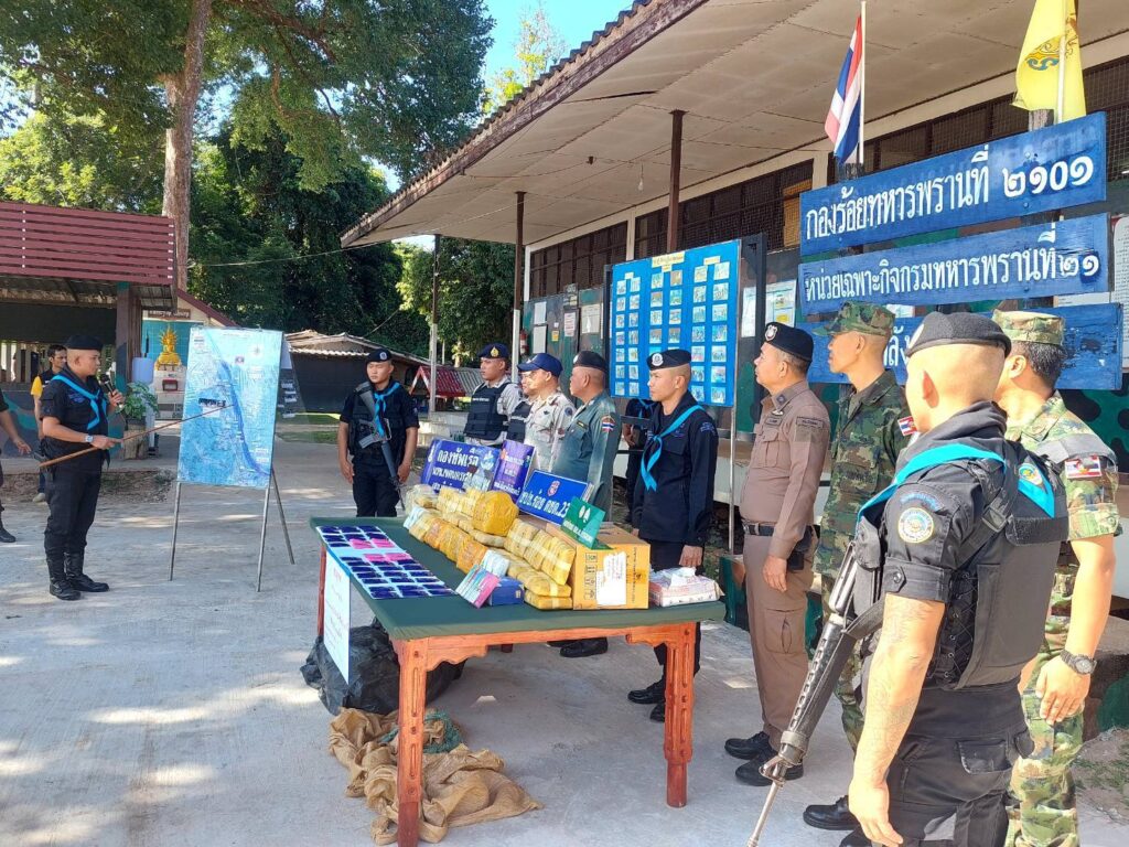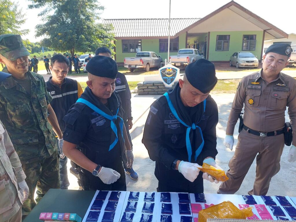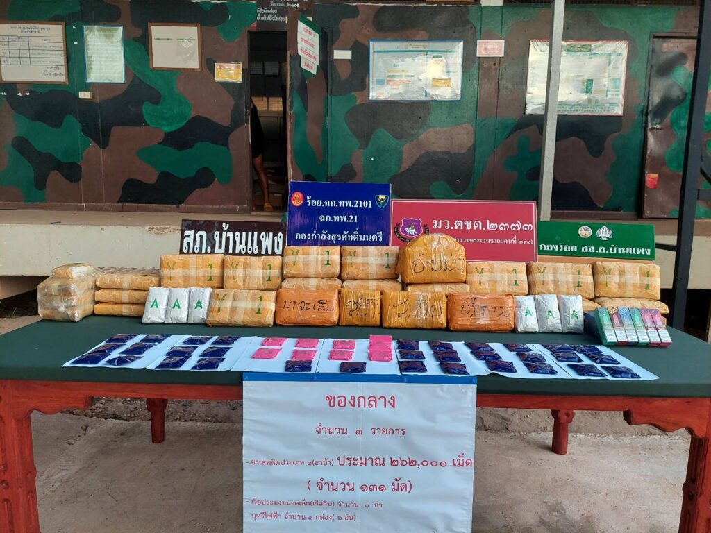 กองกำลังสุรศักดิ์มนตรี โดย พันเอก สุริวัชร์ อัครพรเดชาพงษ์ ผู้บังคับการกรมทหารพรานที่ 21/ผู้บังคับหน่วยเฉพาะกิจกรมทหารพรานที่ 21 นำหน่วยงานความมั่นคงในพื้นที่ อำเภอบ้านแพง จังหวัดนครพนม แถลงข่าวการตรวจยึดยาบ้าล๊อตใหญ่ขนมาแบบกองทัพมด จำนวน 3 กระสอบ ภายในบรรจุ 131 มัด ประมาณ 262,000 เม็ด จากขบวนการค้ายาบ้าข้ามชาติ ในพื้นที่ ริมฝั่งแม่น้ำโขง บ้านแพงใต้ หมู่ที่ 11 ตำบลบ้านแพง อำเภอบ้านแพง จังหวัดนครพนม โดยในห้วงที่ผ่านมาได้รับแจ้งจากแหล่งข่าวว่าจะมีการลักลอบนำเข้ายาเสพติดให้โทษประเภทที่ 1 (ยาบ้า) ไม่ทราบจำนวน จากขบวนการค้ายาเสพติดข้ามชาติล๊อตใหญ่จากฝั่ง สปป.ลาว เข้ามายังฝั่งประเทศไทย บริเวณ ริมฝั่งแม่น้ำโขง บริเวณพื้นที่ริมฝั่งแม่น้ำโขง บ้านแพงใต้ หมู่ที่ 11 ตำบลบ้านแพง อำเภอบ้านแพง จังหวัดนครพนม เพื่อลำเลียงขนส่งเข้าสู่พื้นที่ตอนในให้กับกลุ่มขบวนการค้ายาเสพติดภายในประเทศ จึงสั่งการให้ร้อยโท วันชาติ เหมือนปืน ผู้บังคับกองร้อยเฉพาะกิจทหารพรานที่ 2101 หน่วยเฉพาะกิจทหารพรานที่ 21 ทำการวางแผนร่วมกับหน่วยงานความมั่นคงในพื้นที่ อำเภอบ้านแพง จังหวัดนครพนมทำการลาดตระเวนซุ่มเฝ้าตรวจตามภาพข่าวที่ได้รับแจ้ง เจ้าหน้าที่ตรวจการณ์ด้วยกล้องตรวจการณ์กลางคืน สังเกตุเห็น ชายฉกรรจ์ จำนวน 3 คน ภายเรือกีบหาปลา มาจากฝั่ง สปป.ลาว แล้วเข้าเทียบท่าใกล้กับ จุดที่ กำลังพลของหน่วยทำการซุ่มเฝ้าตรวจพื้นที่อยู่ และชายฉกรรจ์ จำนวน 3 คน ได้แบกสิ่งของขึ้นจากเรือ แล้วเดินขึ้นมายังฝั่งตลิ่งริมแม่น้ำโขง เจ้าหน้าที่จึงได้แสดงตัวขอตรวจสอบ เมื่อกลุ่มรชายฉกรรจ์เห็นว่าเป็นเจ้าหน้าที่ จึงได้ทิ้งสิ่งของที่แบกมา แล้วทำการวิ่งกระโดดลงแม่น้ำโขงหลบหนีไปกับความมืด กำลังพลของหน่วยจึงเข้าตรวจสอบสิ่งของต้องสงสัย จำนวน 3 กระสอบ พบสิ่งของที่บรรจุอยู่ภายในเป็นยาบ้า หน่วยจึงได้ทำการตรวจยึดของกลางมายัง กองร้อยเฉพาะกิจทหารพรานที่ 2101 หน่วยเฉพาะกิจทหารพรานที่ 21 เพื่อทำการตรวจนับอย่างละเอียดอีกครั้งเป็นยาบ้า จำนวน 3 กระสอบ ภายในบรรจุ 131 มัด ประมาณ 262,000 เม็ด เรือกีบไม่มีเครื่องยนต์ จำนวน 1 ลำ และบุหรี่ไฟฟ้า จำนวน 1 กล่อง (6 อัน) หน่วยจึงได้ประสานหน่วยงานความมั่นคงในพื้นที่ร่วมกันตรวจยึดของกลางทั้งหมดพร้อมส่งให้ สภ.บ้านแพง จังหวัดนครพนม เพื่อดำเนินการตามกฏหมายต่อไป