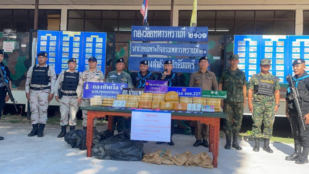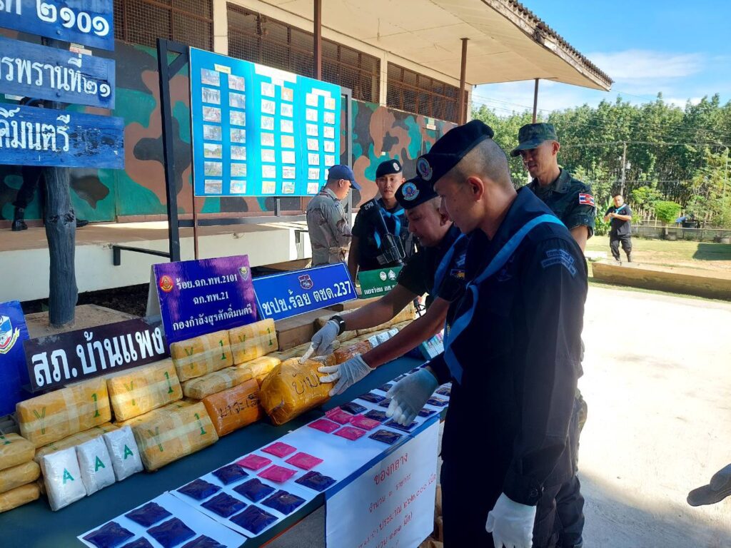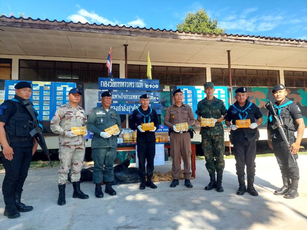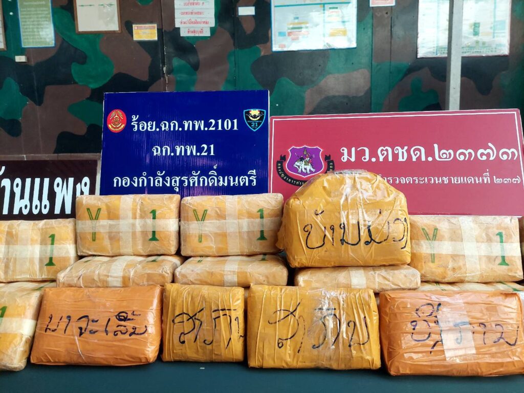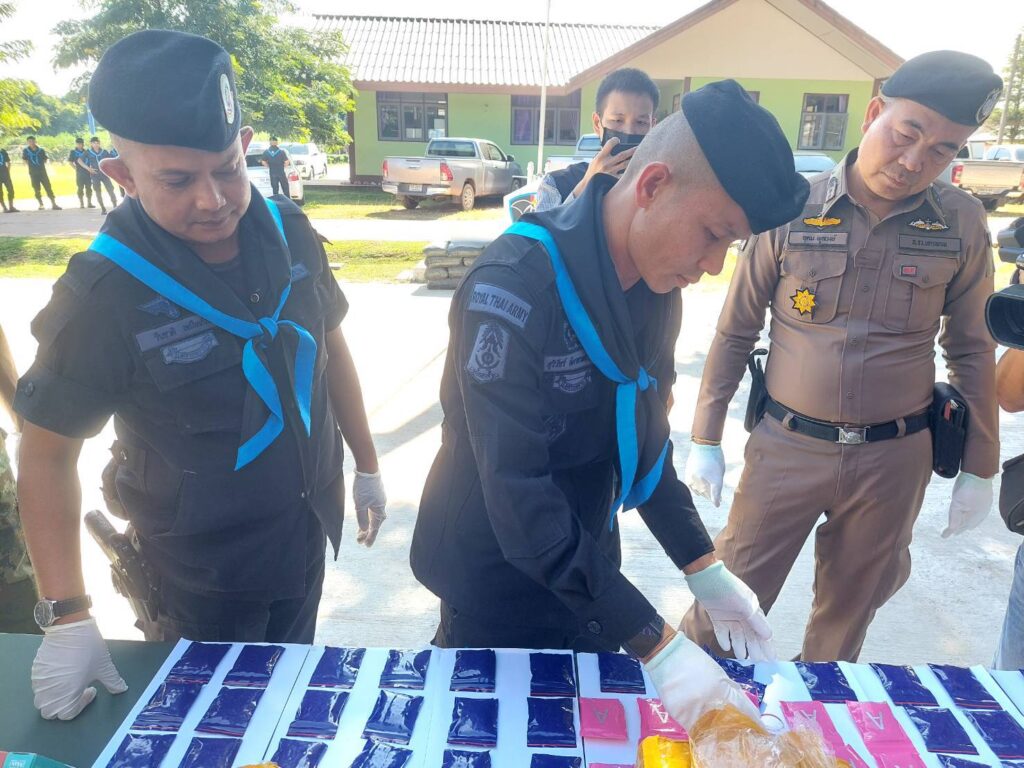 กองกำลังสุรศักดิ์มนตรี โดย พันเอก สุริวัชร์ อัครพรเดชาพงษ์ ผู้บังคับการกรมทหารพรานที่ 21/ผู้บังคับหน่วยเฉพาะกิจกรมทหารพรานที่ 21 นำหน่วยงานความมั่นคงในพื้นที่ อำเภอบ้านแพง จังหวัดนครพนม แถลงข่าวการตรวจยึดยาบ้าล๊อตใหญ่ขนมาแบบกองทัพมด จำนวน 3 กระสอบ ภายในบรรจุ 131 มัด ประมาณ 262,000 เม็ด จากขบวนการค้ายาบ้าข้ามชาติ ในพื้นที่ ริมฝั่งแม่น้ำโขง บ้านแพงใต้ หมู่ที่ 11 ตำบลบ้านแพง อำเภอบ้านแพง จังหวัดนครพนม โดยในห้วงที่ผ่านมาได้รับแจ้งจากแหล่งข่าวว่าจะมีการลักลอบนำเข้ายาเสพติดให้โทษประเภทที่ 1 (ยาบ้า) ไม่ทราบจำนวน จากขบวนการค้ายาเสพติดข้ามชาติล๊อตใหญ่จากฝั่ง สปป.ลาว เข้ามายังฝั่งประเทศไทย บริเวณ ริมฝั่งแม่น้ำโขง บริเวณพื้นที่ริมฝั่งแม่น้ำโขง บ้านแพงใต้ หมู่ที่ 11 ตำบลบ้านแพง อำเภอบ้านแพง จังหวัดนครพนม เพื่อลำเลียงขนส่งเข้าสู่พื้นที่ตอนในให้กับกลุ่มขบวนการค้ายาเสพติดภายในประเทศ จึงสั่งการให้ร้อยโท วันชาติ เหมือนปืน ผู้บังคับกองร้อยเฉพาะกิจทหารพรานที่ 2101 หน่วยเฉพาะกิจทหารพรานที่ 21 ทำการวางแผนร่วมกับหน่วยงานความมั่นคงในพื้นที่ อำเภอบ้านแพง จังหวัดนครพนมทำการลาดตระเวนซุ่มเฝ้าตรวจตามภาพข่าวที่ได้รับแจ้ง เจ้าหน้าที่ตรวจการณ์ด้วยกล้องตรวจการณ์กลางคืน สังเกตุเห็น ชายฉกรรจ์ จำนวน 3 คน ภายเรือกีบหาปลา มาจากฝั่ง สปป.ลาว แล้วเข้าเทียบท่าใกล้กับ จุดที่ กำลังพลของหน่วยทำการซุ่มเฝ้าตรวจพื้นที่อยู่ และชายฉกรรจ์ จำนวน 3 คน ได้แบกสิ่งของขึ้นจากเรือ แล้วเดินขึ้นมายังฝั่งตลิ่งริมแม่น้ำโขง เจ้าหน้าที่จึงได้แสดงตัวขอตรวจสอบ เมื่อกลุ่มรชายฉกรรจ์เห็นว่าเป็นเจ้าหน้าที่ จึงได้ทิ้งสิ่งของที่แบกมา แล้วทำการวิ่งกระโดดลงแม่น้ำโขงหลบหนีไปกับความมืด กำลังพลของหน่วยจึงเข้าตรวจสอบสิ่งของต้องสงสัย จำนวน 3 กระสอบ พบสิ่งของที่บรรจุอยู่ภายในเป็นยาบ้า หน่วยจึงได้ทำการตรวจยึดของกลางมายัง กองร้อยเฉพาะกิจทหารพรานที่ 2101 หน่วยเฉพาะกิจทหารพรานที่ 21 เพื่อทำการตรวจนับอย่างละเอียดอีกครั้งเป็นยาบ้า จำนวน 3 กระสอบ ภายในบรรจุ 131 มัด ประมาณ 262,000 เม็ด เรือกีบไม่มีเครื่องยนต์ จำนวน 1 ลำ และบุหรี่ไฟฟ้า จำนวน 1 กล่อง (6 อัน) หน่วยจึงได้ประสานหน่วยงานความมั่นคงในพื้นที่ร่วมกันตรวจยึดของกลางทั้งหมดพร้อมส่งให้ สภ.บ้านแพง จังหวัดนครพนม เพื่อดำเนินการตามกฏหมายต่อไป