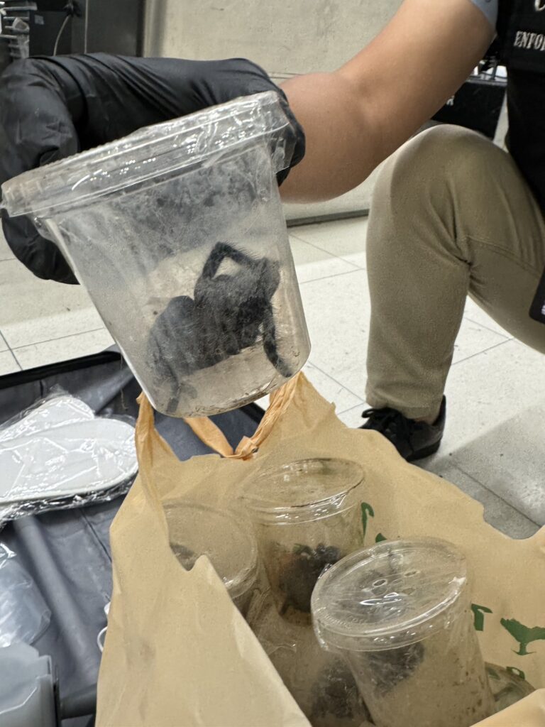 1.ชาย สัญชาติเกาหลี อายุ 24 ปี กำลังจะเดินทางไปกรุงโซล สาธารณรัฐเกาหลี ด้วยสายการบิน Thai Air Asia X เที่ยวบินที่ XJ700 วันที่ 17 พฤศจิกายน 2566 ผลการตรวจค้นพบ สัตว์มีชีวิตประเภทบึ้ง จำนวน 39 ตัว และอีกัวน่า ซึ่งเป็นสัตว์ที่อยู่ภายใต้การควบคุมตามอนุสัญญาว่าด้วยการค้าระหว่างประเทศ ซึ่งชนิดสัตว์ป่าและพืชป่าที่ใกล้สูญพันธุ์ (CITES) ชนิดพันธุ์ในบัญชีหมายเลข 2 จำนวน 5 ตัว รวมจำนวน 2 รายการ จำนวนทั้งหมด 44 ตัว โดยของกลางทั้งหมดบรรจุอยู่ในกระเป๋าเดินทางที่ผู้โดยสารจะโหลดในห้องบรรจุสัมภาระใต้ท้องเครื่อง