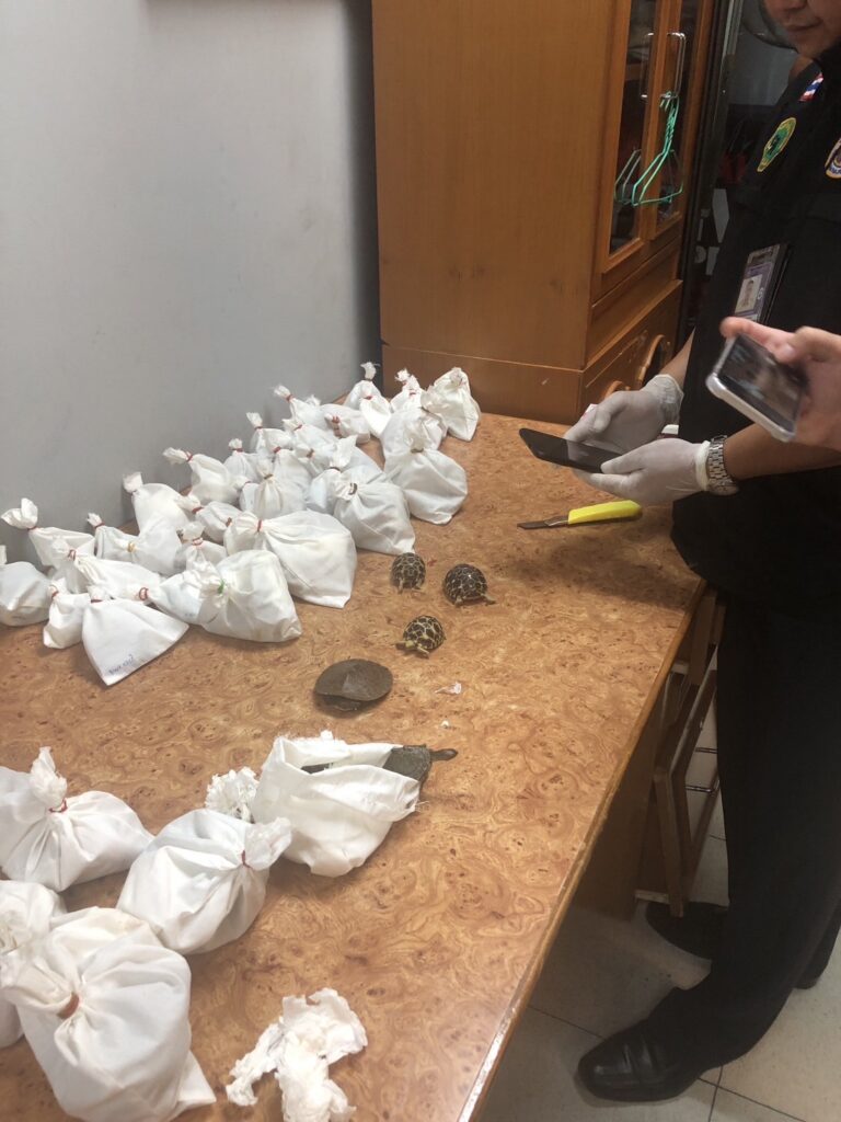 โดยเมื่อวันที่ 17 พฤศจิกายน 2566 ฝ่ายสืบสวนและปราบปราม ส่วนควบคุมทางศุลกากร สำนักงานศุลกากรตรวจของผู้โดยสารท่าอากาศยานสุวรรณภูมิ ได้บูรณาการร่วมกับกรมอุทยานแห่งชาติ สัตว์ป่าและพันธุ์พืช กรมประมง และบริษัท ท่าอากาศยานไทย จำกัด (มหาชน) จับกุมผู้โดยสารพยายามลักลอบนำสัตว์มีชีวิตออกไปนอกราชอาณาจักร จำนวน 2 ราย รายละเอียด ดังนี้