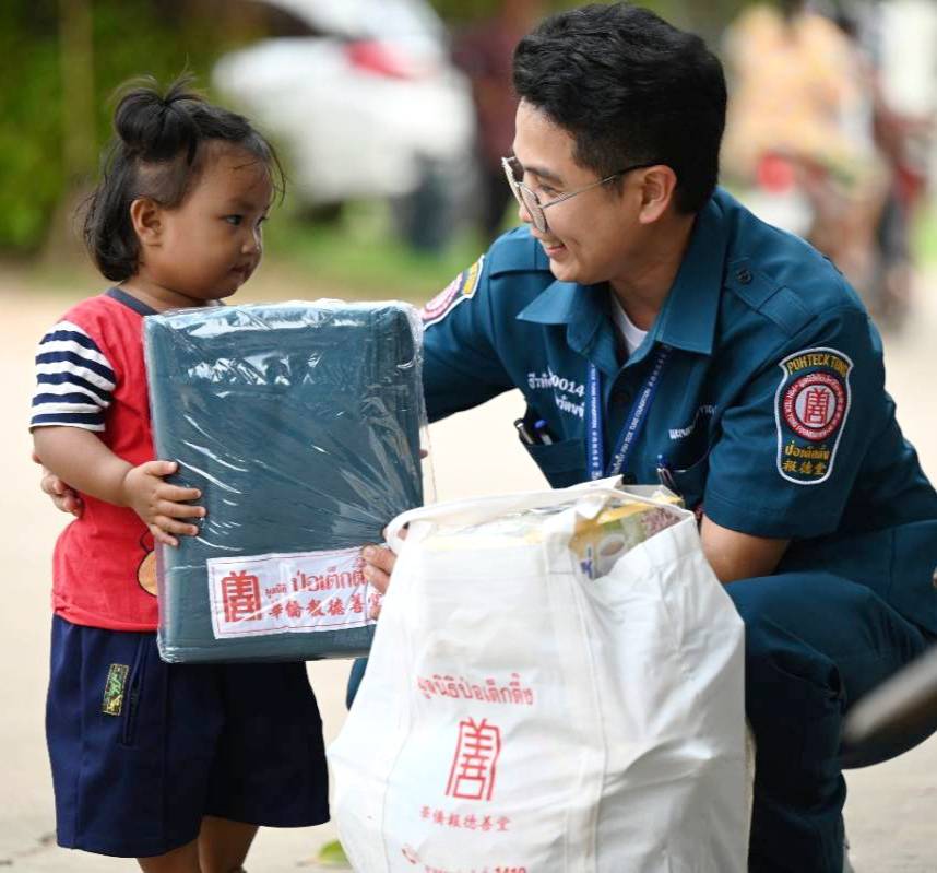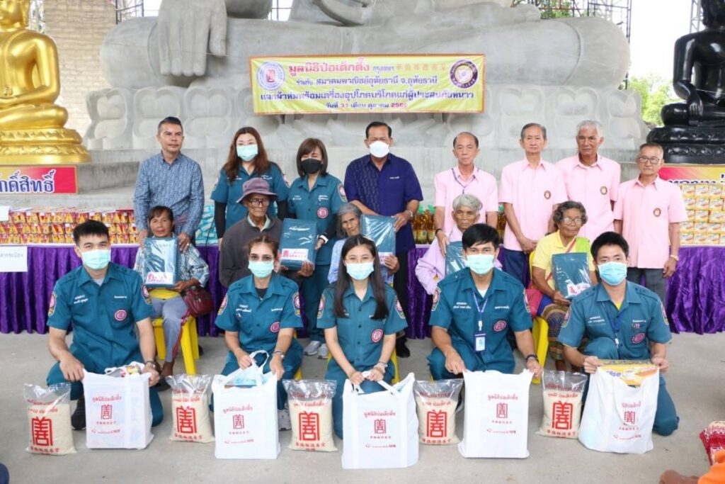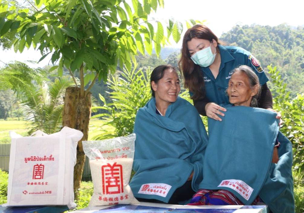 คุณัตถานนท์ กรรมการและเหรัญญิก นางสาวดวงชุตา ติยะพจนพรกุล ผู้ช่วยผู้จัดการฝ่ายสังคมสงเคราะห์ และนายรัชพร ประสงค์ทรัพย์ หัวหน้าแผนกสาธารณภัย ฝ่ายสังคมสงเคราะห์ นำทีมลงพื้นที่ อ.พาน อ.แม่จัน อ.ดอยหลวง อ.เวียงเชียงรุ้ง จ.เชียงราย มอบผ้าห่มกันหนาว พร้อมเครื่องอุปโภคบริโภค อาทิ ข้าวสาร บะหมี่กึ่งสำเร็จรูป ปลากระป๋อง น้ำมันพืช น้ำปลา ฯลฯ บรรจุลงกระเป๋าผ้า รวม 900 ชุด โดยมี ผู้แทนจากหน่วยงานรัฐ รวมทั้ง อาสาสมัครมูลนิธิป่อเต็กตึ๊ง นำโดย นางศิริวรรณ โอภาสวงศ์ อาสาสมัครกิตติมศักดิ์ และนางศิริพร โอภาสวงศ์ อาสาสมัครกิตติมศักดิ์ ร่วมในพิธี รวมทั้ง หน่วยงาน สมาคม /มูลนิธิประจำจังหวัดแต่ละจังหวัด เป็นผู้ประสานงานและร่วมในพิธี