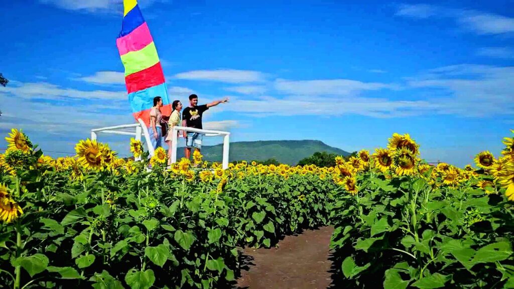 ทั้งนี้ นางสาวพิมพกานต์ พิพิธธนานันท์ ผู้อำนวยการสำนักงาน การท่องเที่ยวแห่งประเทศไทย (ททท.) สำนักงานลพบุรี ได้นำสื่อมวลชนลงพื้นที่ เพื่อประชาสัมพันธ์การท่องเที่ยว และถือเป็นการเปิดฤดูกาลท่องเที่ยวรับลมหนาว อย่างเป็นทางการ พร้อมกับ กล่าวว่า…. การกระตุ้นการท่องเที่ยวในช่วงทุ่งทานตะวันบานของลพบุรี ประจำปี 2566 เริ่มต้นขึ้นแล้ว ช่วงกลางเดือนพฤศจิกายน 2566 ถึง มกราคม 2567 ซึ่งเทศกาลการท่องเที่ยวทุ่งทานตะวัน ถือเป็นหนึ่ง ใน 5 ซอฟต์พาวเวอร์ ของจังหวัดลพบุรี ซึ่งเป็นการนำเอาเรื่องของฤดูกาล มาเชิญชวนนักท่องเที่ยว ให้เดินทางเข้ามาท่องเที่ยวในจังหวัดลพบุรี ซึ่งในช่วงระยะเวลาดังกล่าวก็จะเชื่อมโยงกับเรื่องของการส่งเสริมการท่องเที่ยว จากกรุงเทพมหานคร ในส่วนของรถไฟลอยน้ำเขื่อนป่าสักชลสิทธิ์ ซึ่งกำหนดช่วงฤดูกาล ในการท่องเที่ยวช่วงเดียวกันพอดี ระหว่างเดือนพฤศจิกายน 2566 ถึง มกราคม 2567 นักท่องเที่ยวที่เดินทางมากับขบวนรถไฟลอยน้ำ สามารถเดินทางมาท่องเที่ยว บริเวณทุ่งทานตะวัน ของไร่คุณรำยอง ซึ่งใช้เวลาเดินทางเพียง 15 นาที ซึ่งทุ่งทานตะวันแปลงนี้ ถือเป็นแปลงใหญ่และมีความสวยงามในลำดับต้นๆ ของประเทศไทย เนื่องจากมีฉากหลังเป็นผู้เขาพระยาเดินธง และ มีบริการรถเอทีวีให้เช่า ขับชมทุ่งทานตะวัน และนั่งรถไถลากเพื่อการเกษตร ชมทิวทัศน์รอบทุ่งทานตะวัน ซึ่งนักท่องเที่ยวสามารถเที่ยวเชื่องโยงเเหล่งท่องเที่ยวทางธรรมชาติได้เป็นอย่างดี จึงอยากขอเชิญชวนนักท่องเที่ยวทั้งชาวไทยและชาวต่างชาติ มาท่องเที่ยว จังหวัดลพบุรี กันนะคะ สุขทันที ที่เที่ยวลพบุรี …… ( ปล่อยเสียงสัมภาษณ์……….นางสาวพิมพกานต์ พิพิธธนานันท์ ผู้อำนวยการสำนักงาน การท่องเที่ยวแห่งประเทศไทย (ททท.) สำนักงานลพบุรี )