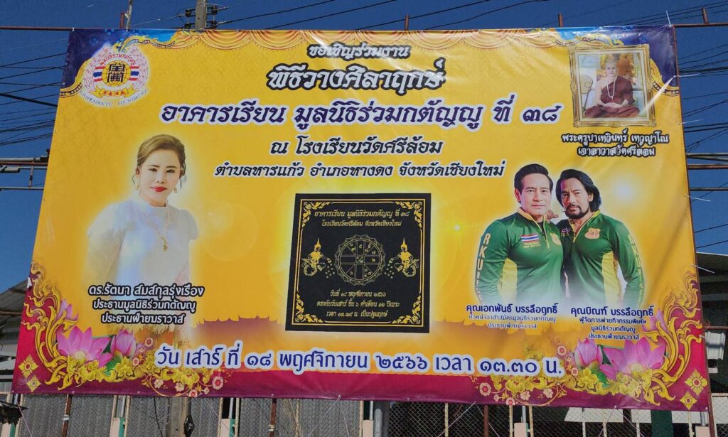 ได้เดินทางมา ทำพิธีวางศิลาฤกษ์ สร้างอาคารเรียน มูลนิธิร่วมกตัญญู แห่งที่ 38 ซึ่งเป็นอาคารเรียน 2 ชั้น ขนาด 4 ห้องเรียน ใต้ถุนโล่ง พร้อมห้องพักครู และครุภัณฑ์ สร้างเพื่อทดแทนอาคารหลังเก่าที่ชำรุดทรุดโทรม