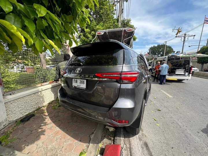 หนุ่มขับฟอร์จูนเนอร์หลับใน เสยท้ายสองแถว พุ่งชนเสาไฟพังยับ