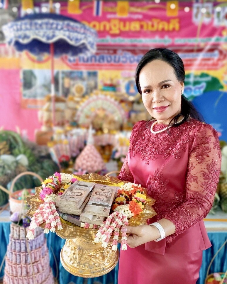 คุณเอมอร จินดาธนาวัฒน์ กล่าวถึงการทำบุญใหญ่ประจำปีนี้ เป็นการสืบทอดประเพณีในพระพุทธศาสนา และเพื่อเป็นการทำนุบำรุงปฏิสังขรณ์วัดวาอารม ให้มีความสง่างามเจริญรุ่งเรืองถาวร ปีนี้ได้เป็นเจ้าภาพ ทอดกฐินสามัคคี 2 วัด วัดแรกที่ วัดนามะตูม อ.พนัสนิคม ยอดบริจาคทำบุญกฐินรวมทั้งสิ้น 9,348,428.50 ล้าน และวัดที่สอง สำนักสงฆ์วังสวัสดิ์ อ.บ้านบึง ยอดบริจาคทำบุญทั้งสิ้น 1,223,444 บาท