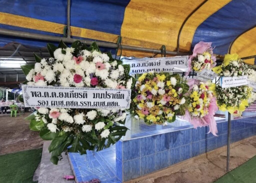 2.นายชัยรัตน์ สุนาสันต์ ภูมิลําเนาอยู่บ้านเลขที่ 171 หมู่ 9 บ้านโนนสูง ตําบลบ้านหยวก อําเภอน้ําโสม จังหวัดอุดรธานีภายใต้อํานวยการของ ร.ต.อ.โกญจนารถ ชาวยาม รอง ผบ.ร้อย ตชด.245 และข้าราชการตํารวจ ร้อย ตชด.245 ได้ร่วมฟังสวดอภิธรรมศพ นายชัยรัตน์ สุนาสันต์ในวันที่ 22-23 ต.ค และมอบหมายให้ พ.ต.ท.ทวี ภาน้อย รอง ผกก.ตชด.24 ร่วมพิธีฌาปนกิจศพ ณ ป่าช้า บ้านหยวก ตําบลบ้านหยวก อําเภอน้ําโสม จังหวัดอุดรธานี ในวันที่ 23.ต.ค.2566