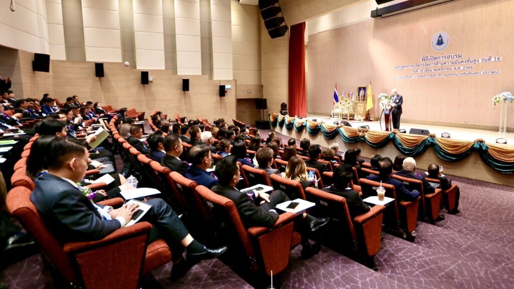 เมื่อวันที่ 18 พฤศจิกายน 2566 ที่ผ่านมา ที่อาคารออดิทอเรียม โรงแรมเซ็นทรา บายเซ็นทารา ศูนย์ราชการแจ้งวัฒนะ : พลเอก จรัล กุลละวณิชย์ ประธานมูลนิธิจัดการเพื่อความมั่นคง เป็นประธานเปิดการอบรมหลักสูตรการบริหารจัดการด้านความมั่นคงขั้นสูง (มส.) รุ่นที่ 16 โดยผู้เข้ารับการอบรมเป็นผู้บริหารระดับสูงจากภาครัฐ ภาคเอกชน และองค์กรสาธารณะ จำนวน 150 คน