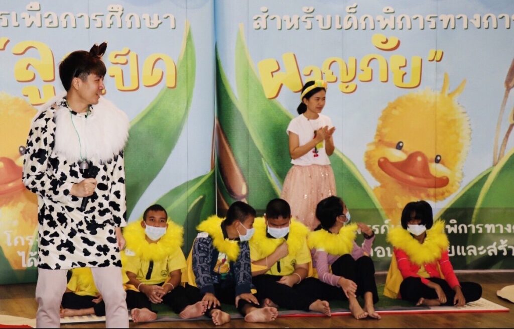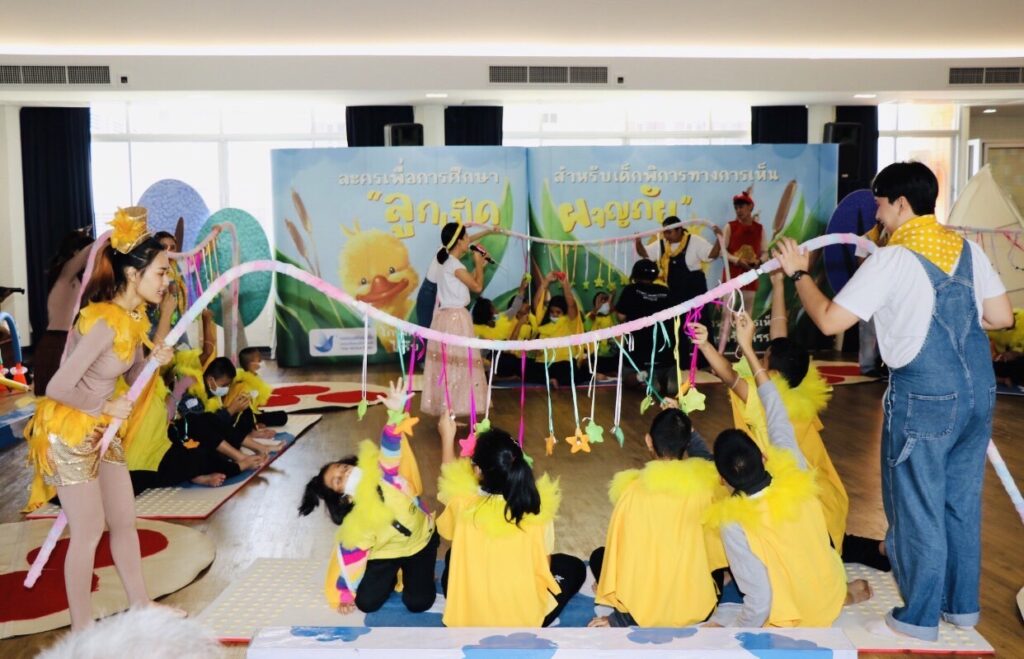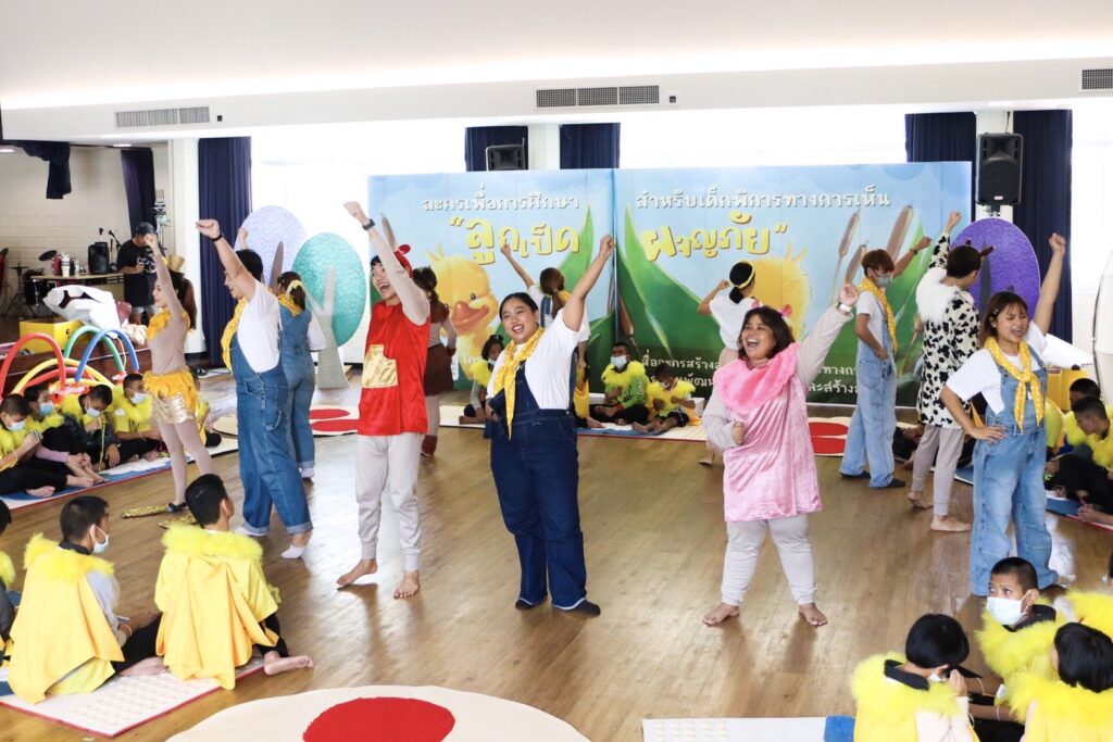กิจกรรมโครงการนี้จะเปิดโอกาสให้เด็กๆมีประสบการณ์ร่วมกับการแสดง โดยการออกแบบละครจะเน้นให้ ผู้ชม (เด็กพิการทางการเห็น) ได้ใช้ทักษะการเคลื่อนไหวร่วมไปกับสวมบทบาทเป็นตัวละครหลักของเรื่องเนื้อเรื่อง การมีปฎิสัมพันธ์โดยใช้ทักษะการสมมุตบทบาทเป็นตัวละครลูกเป็ดและผจญภัยไปกับฉากต่างๆในการแสดง ซึ่งนอกเหนือจากการส่งเสริมจินตนาการและความสนุกสนานในกับสื่อสร้างสรรค์ที่ออกแบบเพื่อเด็กพิการทางการเห็นแล้ว เด็กๆจะได้ฝึกทักษะการเคลื่อนไหวอย่างอิสระเช่นเดียวกับการเล่นในสนามเด็กเล่น เพียงแต่กระบวนการออกแบบละครจะช่วยแนะนำและเปิดพื้นที่ปลอดภัยให้เด็กพิการทางการเห็นได้มีโอกาสพัฒนาการเคลื่อนไหวมากขึ้น