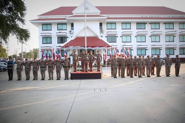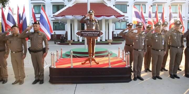 พิธีปล่อยแถวระดมกวาดล้างอาชญากรรมในช่วงเทศกาลลอยกระทง ประจำปี 2566 ของตำรวจภูธรจังหวัดลพบุรี ณ บริเวณลานหน้า ภ.จว.ลพบุรี