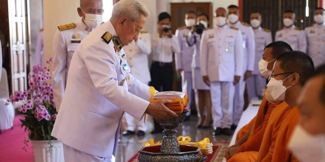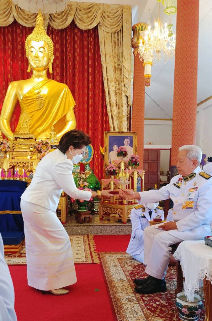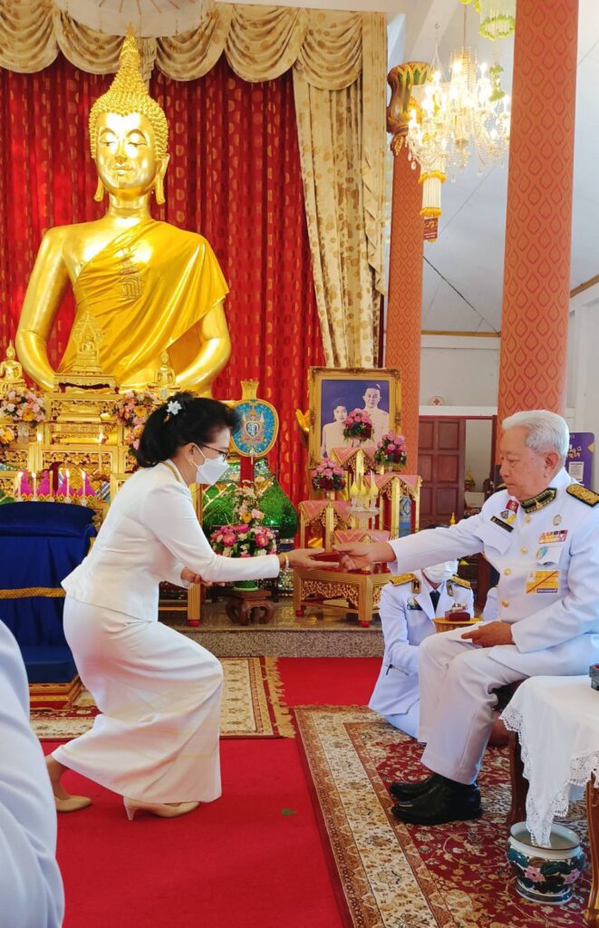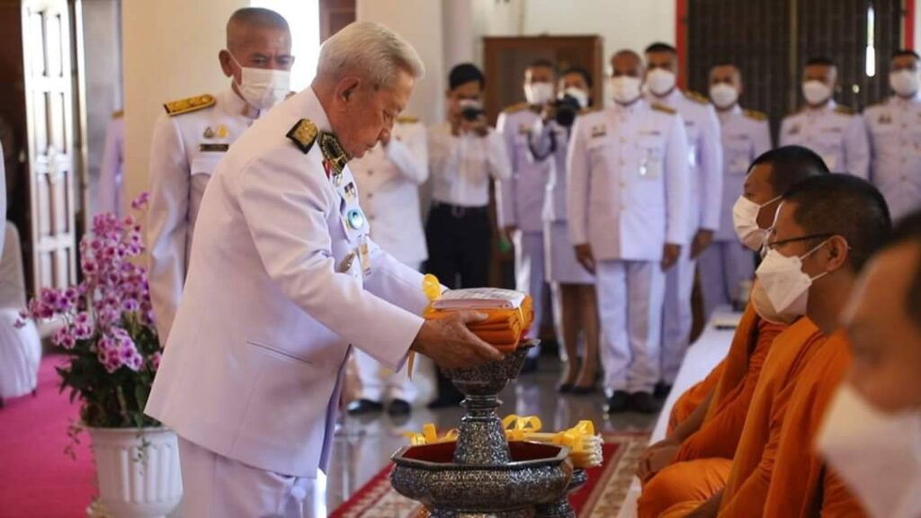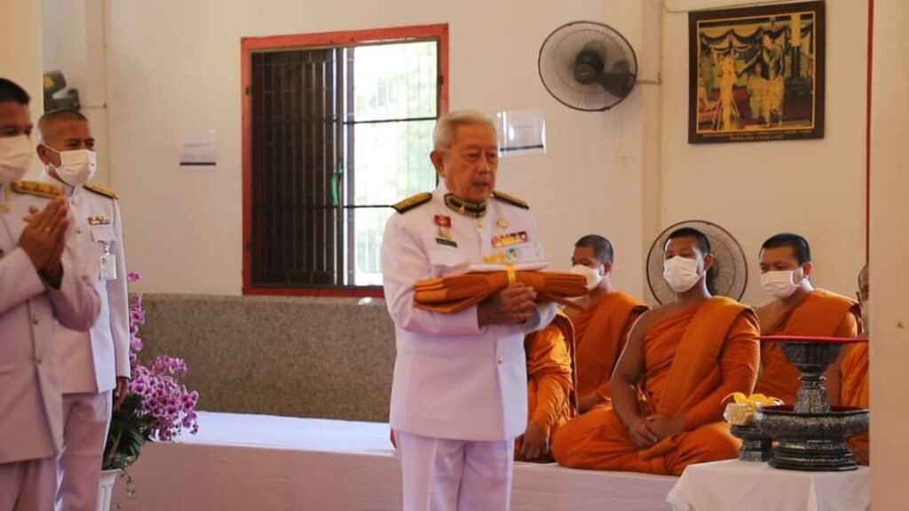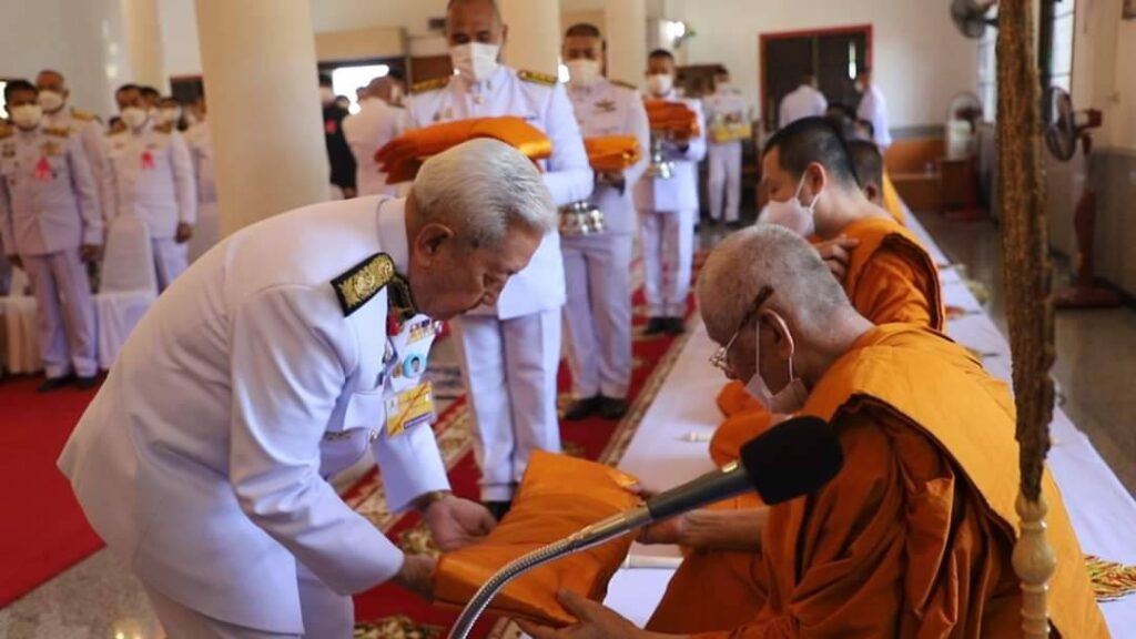 ประธานองคมนตรี เปิดกรวยถวายสักการะพระบรมฉายาลักษณ์พระบาทสมเด็จพระเจ้าอยู่หัว จากนั้นรับผ้าพระกฐิน อุ้มประคองนำผ้าพระกฐินพระราชทานเข้าสู่อุโบสถ วางผ้าที่พานแว่นฟ้าหน้าพระสงฆ์ ประธานจุดธูปเทียนบูชาพระประธานจากนั้นประธานอุ้มประคองผ้าพระกฐิน กล่าวคำถวายผ้าพระกฐิน แล้วเสร็จ วางผ้าพระกฐินบนพานแว่นฟ้า แล้วประเคน พร้อมทั้งถวายเทียนพระปาฏิโมกข์ จากนั้นพระสงฆ์กระทำพิธีอุปโลกน์ จากนั้นประธานถวายบริวารกฐินแด่พระสงฆ์ และถวายจตุปัจจัยไทยธรรมแด่พระสงฆ์