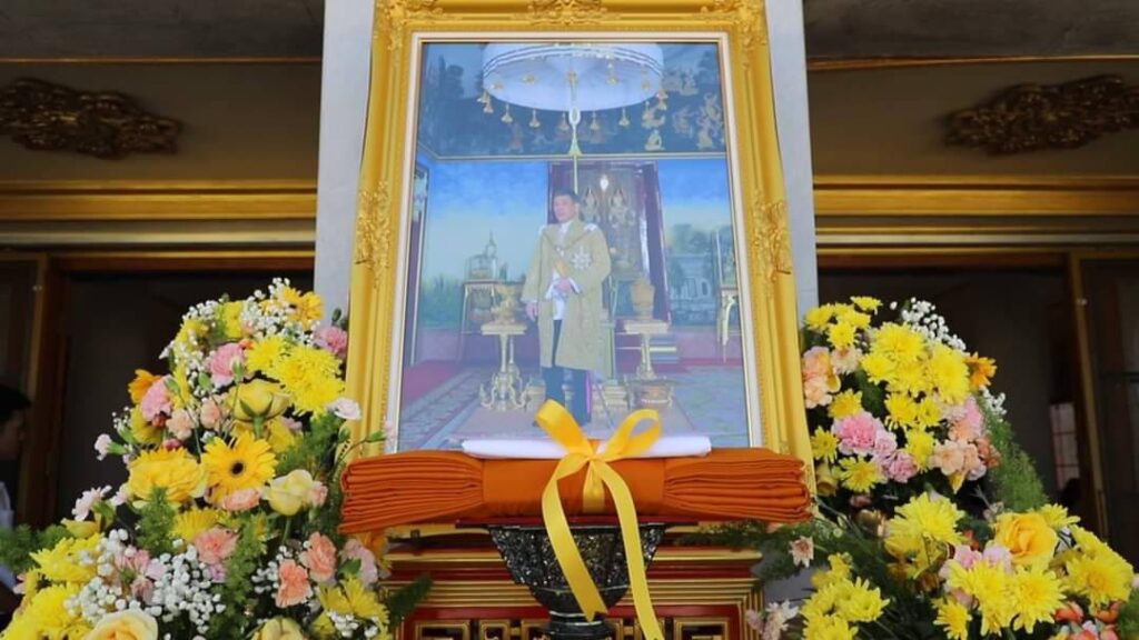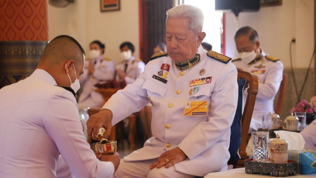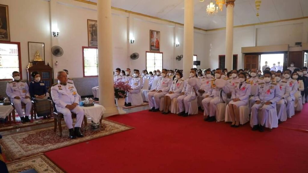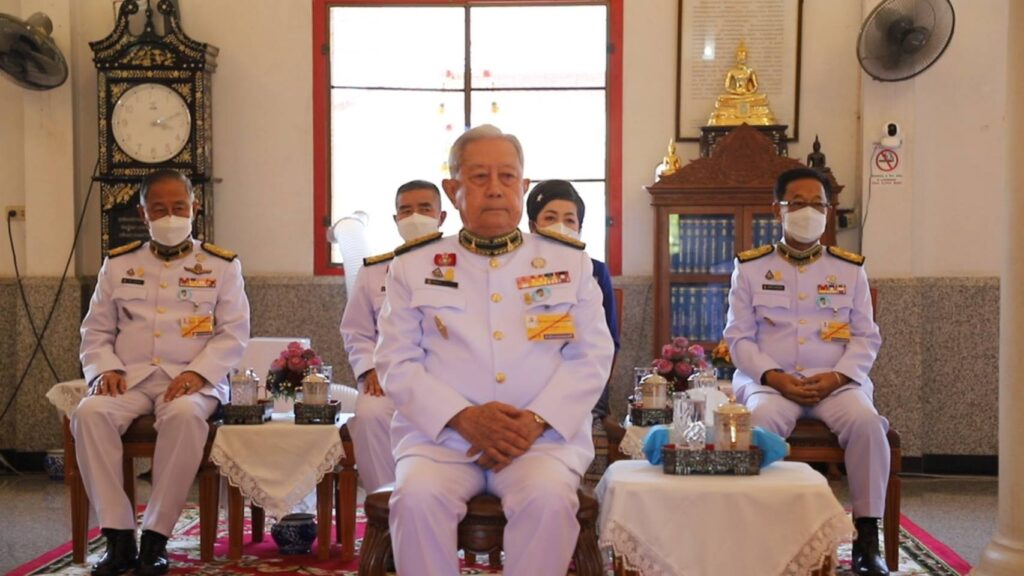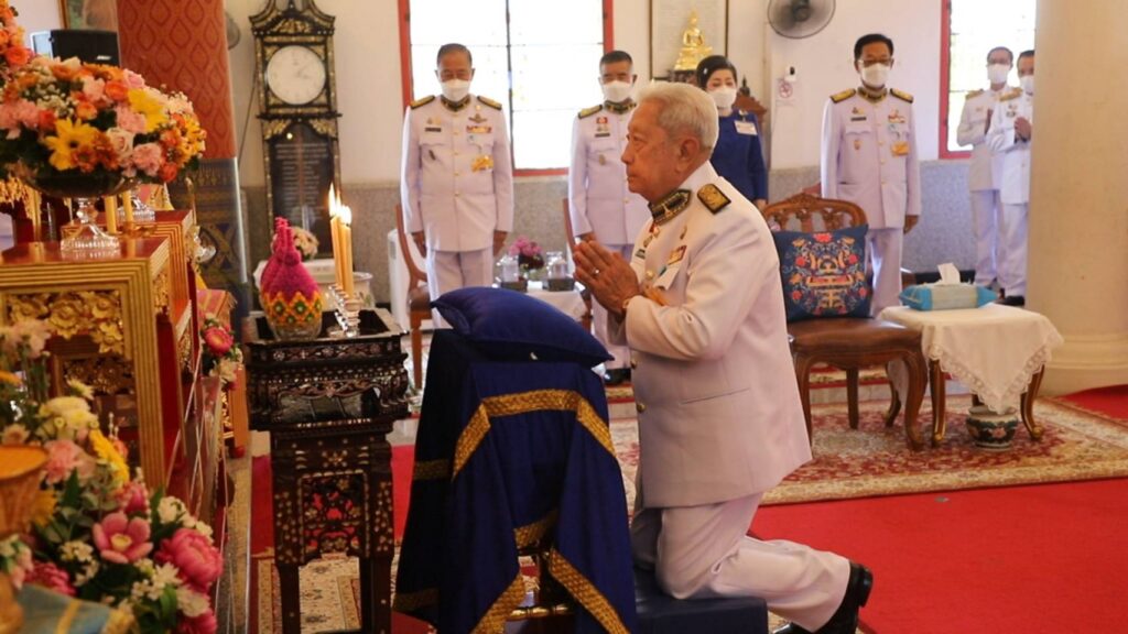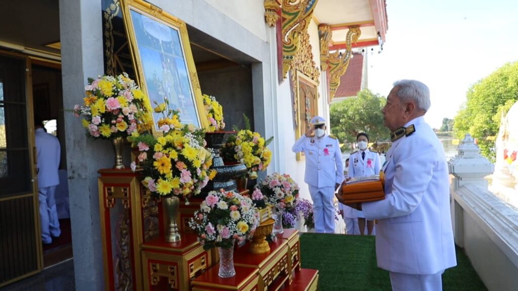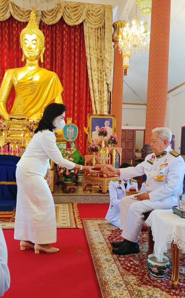 ประธานองคมนตรี เปิดกรวยถวายสักการะพระบรมฉายาลักษณ์พระบาทสมเด็จพระเจ้าอยู่หัว จากนั้นรับผ้าพระกฐิน อุ้มประคองนำผ้าพระกฐินพระราชทานเข้าสู่อุโบสถ วางผ้าที่พานแว่นฟ้าหน้าพระสงฆ์ ประธานจุดธูปเทียนบูชาพระประธานจากนั้นประธานอุ้มประคองผ้าพระกฐิน กล่าวคำถวายผ้าพระกฐิน แล้วเสร็จ วางผ้าพระกฐินบนพานแว่นฟ้า แล้วประเคน พร้อมทั้งถวายเทียนพระปาฏิโมกข์ จากนั้นพระสงฆ์กระทำพิธีอุปโลกน์ จากนั้นประธานถวายบริวารกฐินแด่พระสงฆ์ และถวายจตุปัจจัยไทยธรรมแด่พระสงฆ์