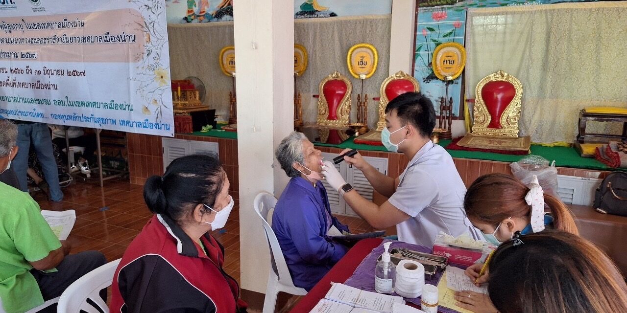วันนี้ 22 พ.ย.2566 เวลา 08.30 น. – 12.00 น. ณ วัดช้างเผือก ชุมชนบ้านช้างเผือก งานส่งเสริมสุขภาพกองสาธารณสุขและสิ่งแวดล้อม ร่วมกับ เจ้าหน้าที่โรงพยาบาลน่าน ,ประธานชุมชนบ้านช้างเผือก ,อสม. ดำเนินโครงการส่งเสริมสุขภาพผู้สูงอายุตามแนวชะลอชรา ชีวายืนยาวเทศบาลเมืองน่าน ประจำปีงบประมาณ 2567 โดยมีกลุ่มเป้าหมายจำนวน 124 คน ภายใต้โครงการดังกล่าวประกอบด้วยกิจกรรมตรวจคัดกรองสุขภาพให้แก่ ผู้สูงอายุในชุมชน เขตพื้นที่เทศบาลเมืองน่าน ซึ่งได้ดำเนินการร่วมกับโรงพยาบาลน่าน ทั้งนี้จะมีการตรวจสุขภาพเบื้องต้น เช่น การชั่งน้ำหนัก,วัดส่วนสูง,วัดรอบเอว,BMI, การตรวจช่องปากและฟัน, การตรวจประเมินความเสี่ยงของภาวะสมองเสื่อม, การประเมินภาวะการหกล้ม TUGT, การประเมิน ADL, การวางแผนระยะท้ายของชีวิต,การตรวจวัดสายตาและการตรวจประเมินข้อเข่าเสื่อม โดยจะดำเนินกิจกรรมเดือนละ 4 ครั้งในทุกวันพุธและขอขอบคุณเจ้าหน้าที่งานป้องกันและบรรเทาสาธารณภัยที่ให้ความอนุเคราะห์ในการเคลื่ิอนย้ายอุปกรณ์ทางการแพทย์นำส่งคืนโรงพยาบาลน่าน