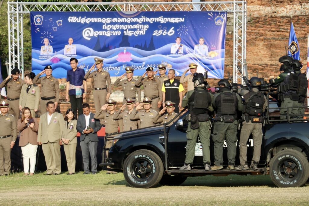 ร่วมพิธีปล่อยแถวระดมกวาดล้างอาชญากรรมก่อนเทศกาลลอยกระทง พ.ศ.2566 และร่วมแถลงผลการปฏิบัติฯ ของ ภ.จ.พระนครศรีอยุธยา
