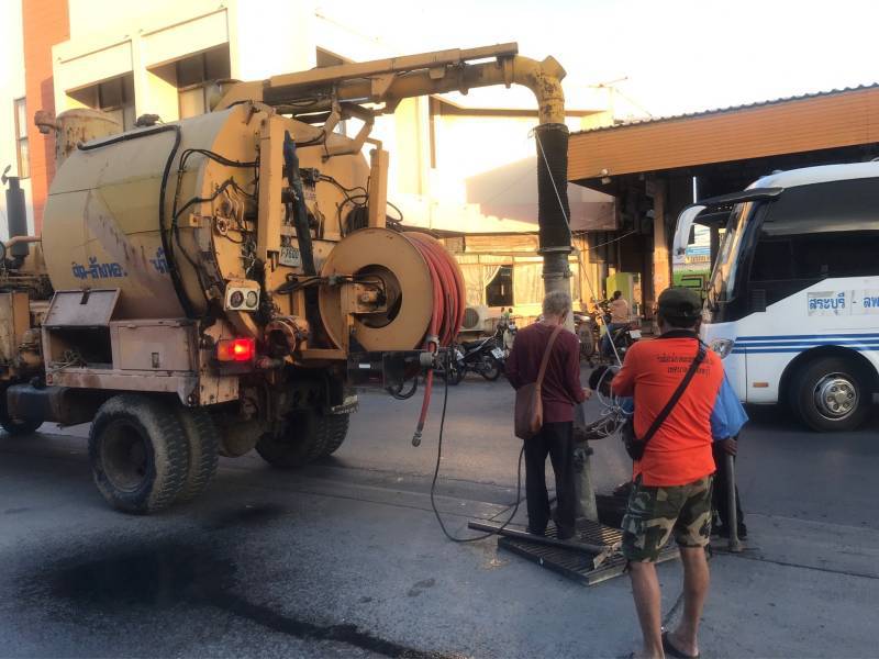 เมื่อวันที่ ๒๓ พฤศจิกายน ๒๕๖๖ นายจําเริญ สละชีพ นายกเทศมนตรีเมืองลพบุรี มอบให้เจ้าหน้าที่กองสาธารณสุขและสิ่งแวดล้อม เทศบาลเมืองลพบุรี และเจ้าหน้าที่งานป้องกันและบรรเทาสาธารณภัย เทศบาลเมืองลพบุรี พร้อมด้วยรถดูดสิ่งปฏิกูลและรถดับเพลิง พร้อมอุปกรณ์ ออกดูดล้างท่อระบายน้ำ บริเวณสถานีขนส่งผู้โดยสารจังหวัดลพบุรี (บขส.สระแก้ว – เทศบาลเมืองลพบุรี) เพื่อดูดขยะ-ไขมัน ที่ติดค้างอยู่ในท่อระบายน้ำ แก้ไขปัญหาท่อระบายน้ำอุดตัน ลดปัญหาน้ำท่วมขัง และล้างทำความสะอาดโดยรอบ บริเวณสถานีขนส่งผู้โดยสารจังหวัดลพบุรี (บขส.สระแก้ว – เทศบาลเมืองลพบุรี) เพื่อให้เกิดความสะอาด สวยงาม เป็นระเบียบเรียบร้อย