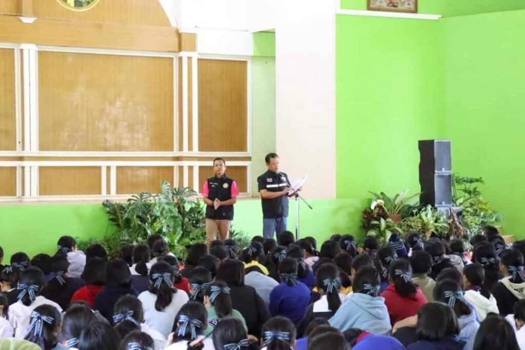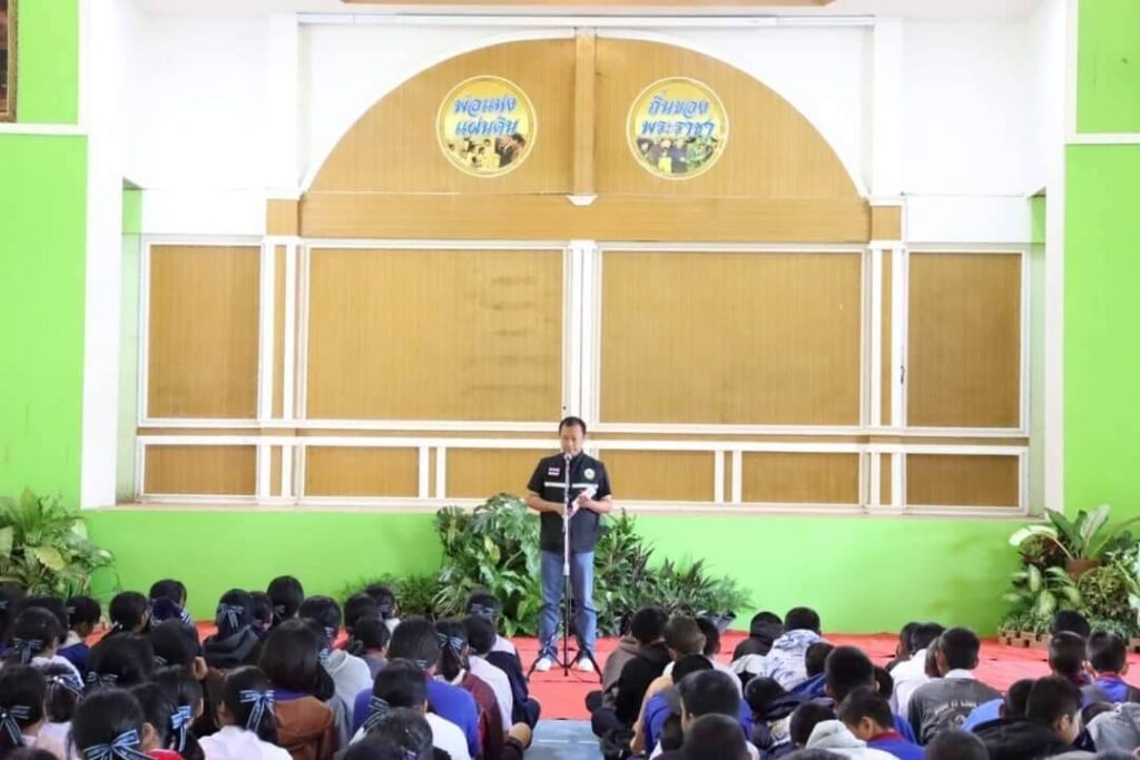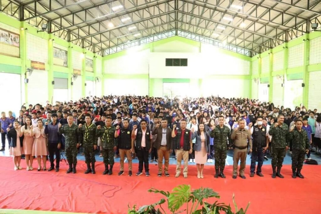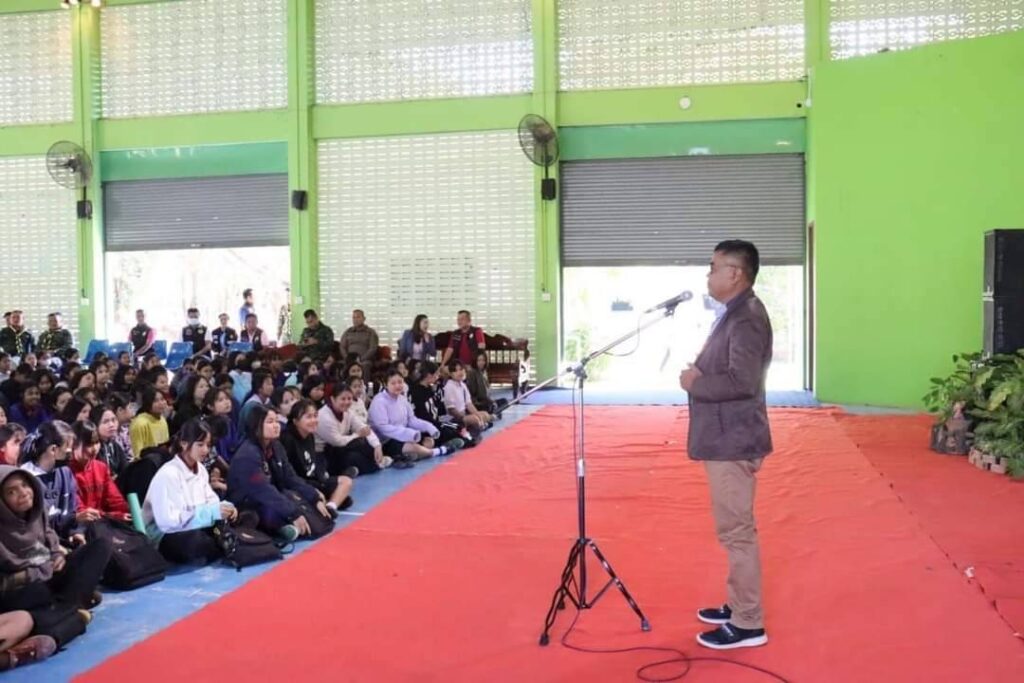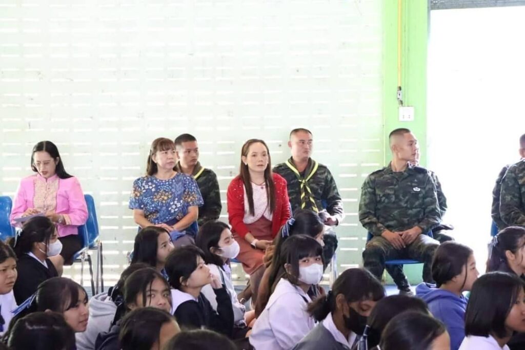 เมื่อวันที่ 21 พฤศจิกายน 2566 ณ หอประชุมอเนกประสงค์ โรงเรียนป่าเด็งวิทยา นางสาวศิริญา เดชะคำภู ผู้อำนวยการโรงเรียนป่าเด็งวิทยา พร้อมด้วย นางสาวเรณู สีลิ้นจี่ รองผู้อำนวยการ คณะครู และนักเรียน ร่วมต้อนรับ และเข้ารับฟังการบรรยายจากกอ.รมน.จังหวัดเพชรบุรี มอบหมายให้ พ.อ.สนอง ธัญญานนท์ หน.กลุ่มงานกิจการมวลชน กอ.รมน.จังหวัดเพชรบุรี