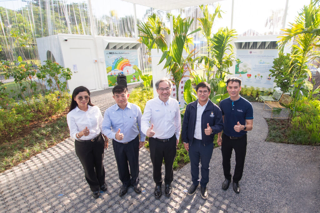ศาสตราจารย์ ดร.ชูกิจ ลิมปิจำนงค์ ผู้อำนวยการสำนักงานพัฒนาวิทยาศาสตร์และเทคโนโลยีแห่งชาติ (สวทช.) กล่าวว่า “สำนักงานพัฒนาวิทยาศาสตร์และเทคโนโลยีแห่งชาติ (สวทช.) หน่วยงานในสังกัดกระทรวงการอุดมศึกษา วิทยาศาสตร์ วิจัยและนวัตกรรม (อว.) ได้ดำเนินโครงการภายใต้ แผนงานยุทธศาสตร์พัฒนาพื้นที่และเมืองน่าอยู่อัจฉริยะ และได้รับการพิจารณาเป็นโครงการสำคัญปี 2566 (ตามมติคณะรัฐมนตรี เมื่อวันที่ 9 พฤศจิกายน 2564) ภายใต้ชื่อโครงการนวัตกรรมสวนนันทนาการอากาศสะอาดเพื่อเมืองน่าอยู่ โดยมี ดร.พรอนงค์ พงษ์ไพบูลย์ เป็นหัวหน้าโครงการ เพื่อพัฒนานวัตกรรมที่ช่วยสร้างสรรค์พื้นที่สวนสำหรับการทำกิจกรรมนันทนาการและพักผ่อนหย่อนใจ ในช่วงที่มีปัญหาฝุ่นละอองขนาดเล็ก PM2.5 โดย (สวทช.) ได้คิดค้นรูปแบบโครงสร้างที่สามารถควบคุมการไหลเวียนของอากาศภายในพื้นที่กึ่งปิดกึ่งเปิดโดยฝุ่น PM2.5 จากภายนอกไม่สามารถเข้ามาได้ ร่วมกับนวัตกรรมการเพิ่มประสิทธิภาพการกรองฝุ่น PM2.5 เพื่อสร้างพื้นที่อากาศสะอาดให้หายใจได้เต็มปอดโดยไม่ต้องกังวลต่อมลพิษฝุ่น PM2.5 ซึ่งโครงสร้างได้ถูกออกแบบให้สามารถถอดประกอบเพื่อการขนย้ายไปติดตั้งใช้งานในสถานที่ต่างๆ ที่ประสบปัญหาฝุ่น PM2.5 ได้ ทั้งนี้ต้องขอขอบคุณสำนักสิ่งแวดล้อม กทม. ที่ได้ให้ความสนับสนุนสถานที่สาธิตนวัตกรรมสวนนันทนาการอากาศสะอาดเพื่อเมืองน่าอยู่ ณ สวนจตุจักร ระหว่างเดือน พฤศจิกายน 2566 – พฤษภาคม 2567 เป็นระยะเวลา 7 เดือน”
