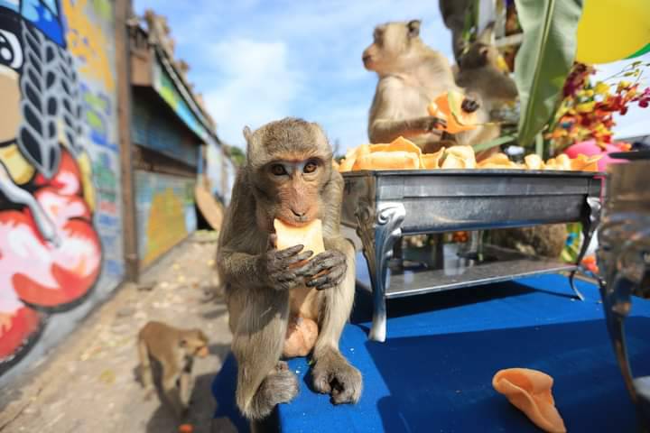 ลพบุรีจัดใหญ่ งานเลี้ยงโต๊ะจีนลิง ประจำปี 2566 ฝูงลิงคึกคัก นักท่องเที่ยวและสื่อมวลชนทั่วโลกให้ความสนใจเป็นจำนวนมาก
