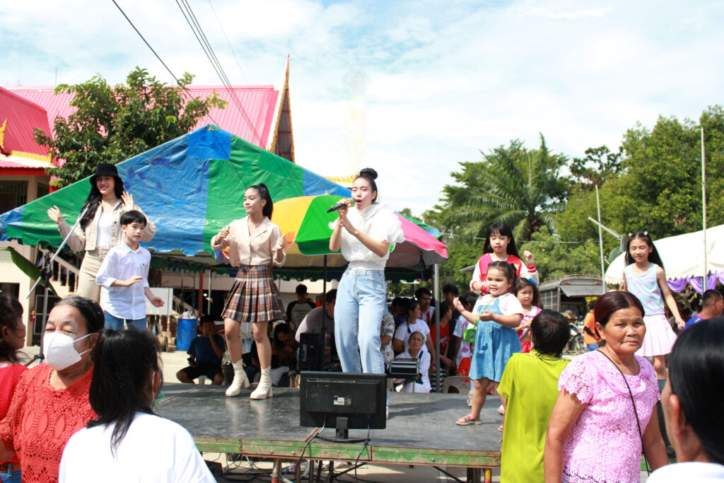 ซึ่งบรรยากาศเป็นไปอย่างอบอุ่นตั้งแต่ช่วงเช้า โดยมีโชว์มินิคอนเสิร์ตสุดพิเศษจากเหล่านักแสดง เปิดเวทีเรียกเสียงกรี๊ดจากพ่อยกแม่ยกกันด้วย 2 นักแสดงหนุ่มรุ่นใหญ่ กระดุม และ อาร์ต ตามมาด้วยน้องๆ นักแสดงนิวเจนจาก สวัสดี วิชชั่น ที่ผลัดกันขึ้นเวทีทั้งร้องและเต้นกันแบบไม่มีพัก สร้างความคึกคักให้กับเหล่าชาวบ้านผู้ใจบุญ ที่มาร่วมทำบุญทอดกฐินสามัคคีกันในครั้งนี้เป็นอย่างมาก ทั้งอิ่มบุญและอิ่มใจกันถ้วนหน้าไปเลยจ้า