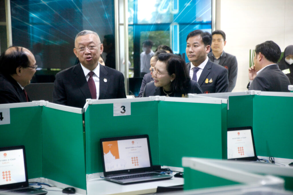 เมื่อวันที่ 26 พ.ย.2566 พลตำรวจเอก เพิ่มพูน ชิดชอบ รัฐนตรีว่าการกระทรวงศึกษาธิการ ในฐานะ ประธานกรรมการคุรุสภา พร้อมด้วย ผศ.ดร.อมลวรรณ วีระธรรมโม เลขาธิการคุรุสภา,ดร.สุดา สุขอ่ำ รองเลขาธิการคุรุสภา,ผศ.ดร.พลรพี ทุมมาพันธ์ รองเลขาธิการคุรุสภา คณะอนุกรรมการอำนวยการทดสอบและประเมินสมรรถนะทางวิชาชีพครู เพื่อขอรับใบอนุญาตประกอบวิชาชีพครู และคณะ ลงพื้นที่ตรวจเยี่ยมสนามทดสอบและประเมินสมรรถนะทางวิชาชีพครู ด้านความรู้และประสบการณ์วิชาชีพ ตามมาตรฐานวิชาชีพครู รายวิชาครู ด้วยระบบอิเล็กทรอนิกส์ ครั้งที่ 1 ประจำปี 2566 รอบที่ 4 ณ ศูนย์สอบภาคกลาง มหาวิทยาลัยเกษตรศาสตร์ กรุงเทพมหานคร ซึ่งคุรุสภาได้จัดการทดสอบผ่านระบบ Computer-Based ทั่วประเทศเป็นครั้งแรก