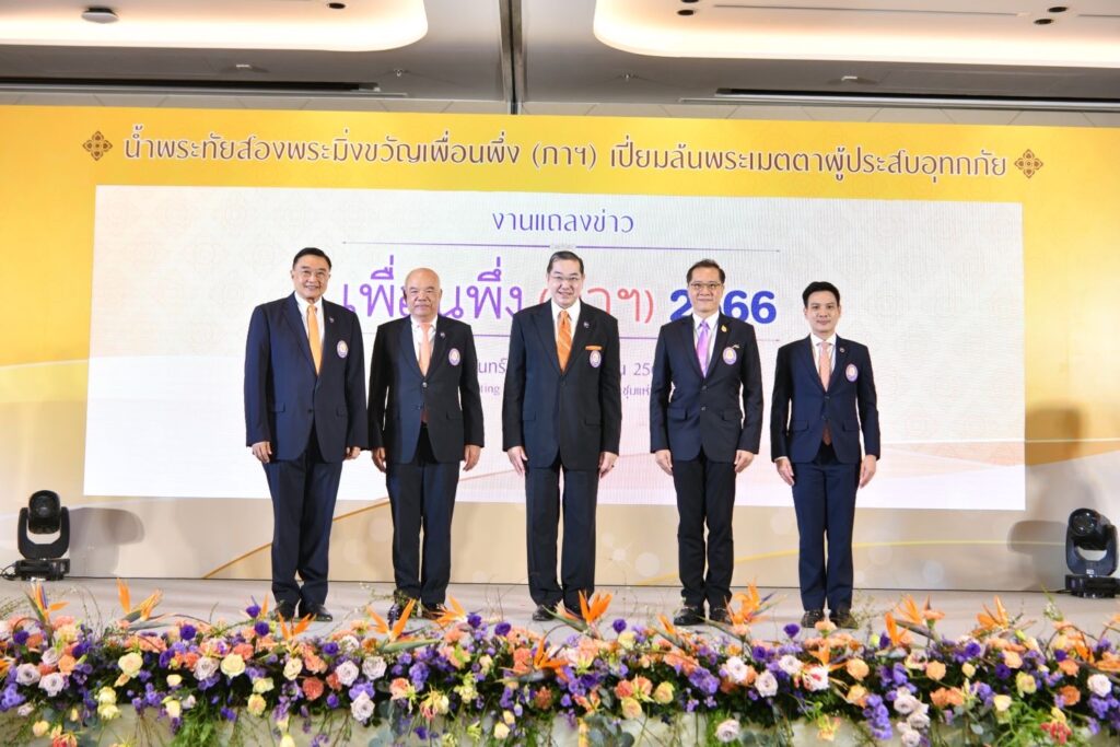 โดยมีศาสตราจารย์พิเศษ ดร.สุรเกียรติ์ เสถียรไทย ในฐานะประธานคณะ กรรมการอำนวยการจัดงาน “เพื่อนพึ่ง (ภาฯ) 2566” พร้อมด้วยคุณฉัตรชัย พรหมเลิศ รองประธานคณะกรรมการอำนวยการจัดงานฯ, คุณวีระศักดิ์ โควสุรัตน์ รองประธานคณะกรรมการอำนวยการจัดงานฯ, ดร.สรจักร เกษมสุวรรณ รองประธานคณะกรรมการอำนวยการจัดงานฯ และคุณฐิติวัฒน์ ว่องวรรณกุล กรรมการและเลขานุการคณะกรรมการอำนวยการจัดงานฯ พร้อมด้วยคณะกรรมการมูลนิธิอาสาเพื่อนพึ่ง (ภาฯ) ยามยาก สภากาชาดไทย หน่วยงานภาคีเครือข่าย และศิลปิน ร่วมงานแถลงข่าว
