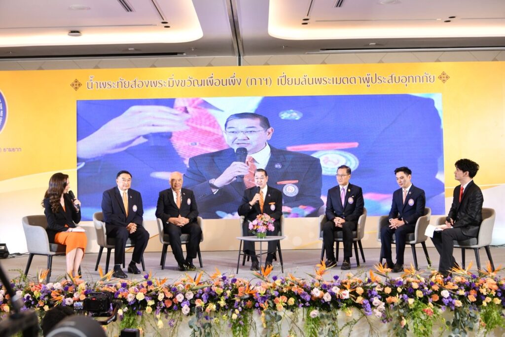 ศาสตราจารย์พิเศษสุรเกียรติ์ เสถียรไทย ในฐานะประธานคณะกรรมการอำนวยการจัดงานฯ ได้กล่าวถึงที่มาของการจัดงานซึ่งมาจากวิสัยทัศน์และพันธกิจของมูลนิธิฯ ที่ดำเนินงานตามพระนโยบายของสมเด็จพระเจ้าลูกเธอ เจ้าฟ้าพัชรกิติยาภา นเรนทิราเทพยวดี กรมหลวงราชสาริณีสิริพัชร มหาวัชรราชธิดา องค์ประธานกรรมการมูลนิธิฯ “มูลนิธิฯ จะเป็นศูนย์กลางการเป็นเลิศด้านการบรรเทาทุกข์และจัดการภัยพิบัติอันเกิดจากอุทกภัย (Center of Excellence in Flood Relief and Management) ในด้านสังคมและมนุษย์ เน้นการประสานงานกับภาคีเครือข่ายซึ่งเป็นผู้เชี่ยวชาญในแต่ละสาขา เพื่อบูรณาการการทำงานร่วมกันทั้งด้านการป้องกัน เพื่อให้เกิดการสูญเสียน้อยที่สุด หรือมีประสิทธิภาพมากที่สุดในการป้องกันการสูญเสีย การบรรเทาทุกข์เพื่อช่วยเหลือผู้ประสบภัยให้ผ่านพ้นเวลาที่ยากลำบากไปได้ด้วยดี และการฟื้นฟูให้กับประชาชนที่ประสบอุทกภัย ให้สามารถกลับมาดำรงชีวิตอย่างปกติได้อย่างยั่งยืน จีงจำเป็นที่จะต้องเก็บข้อมูลเชิงสังคม และนำมาบูรณาการ มองและเข้าใจปัญหาแบบองค์รวม ดำเนินการตามเป้าหมายอันเดียวกัน เพื่อมุ่งไปสู่การพัฒนาที่เกิดความยั่งยืนให้สังคม” จากพระนโยบายของพระองค์นั้น ปัจจุบันมูลนิธิฯ จึงมุ่งเน้นการช่วยเหลือประชาชนจากอุทกภัยแบบครบวงจรและยั่งยืนเป็นศูนย์กลางประสานภาคีเครือข่าย เชื่อมโยง สนับสนุน ร่วมมือกับภาครัฐ เอกชน ชุมชน และขยายงานความช่วยเหลือประชาชนที่เดือดร้อนไปทั่วประเทศ