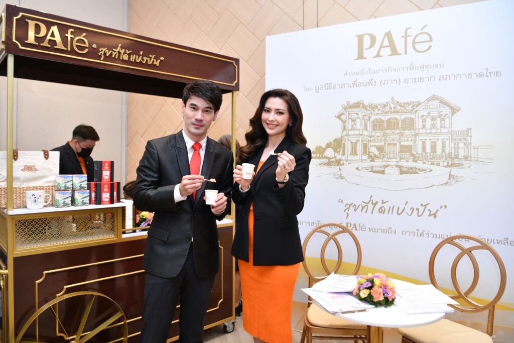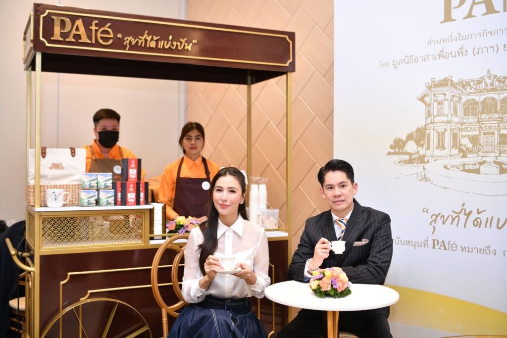 ร้าน“PAfé สุขที่ได้แบ่งปัน” จำลองอาคารมหินทรเดชานุวัฒน์ ที่ตั้งของร้าน PAfé ในปัจจุบัน ออกแบบให้เป็นมุมถ่ายภาพได้ นำเมนูพิเศษซิกเนเจอร์จาก PAfé อาทิ Drip Coffee ที่ใช้เมล็ดกาแฟสาละวะไล่โว่ กาแฟรักษ์ป่าจากผืนป่าตะวันตก สังขละบุรี กาญจนบุรี ที่พลิกชีวิตชุมชนอย่างยั่งยืน ไอศกรีมแตงโมหน้าปลาแห้ง ที่ดัดแปลงมาจากเมนูของว่างในสมัยก่อน คือ เมนูแตงโมปลาแห้ง และ ไอศกรีมกะทิหน้านวลไส้ไข่เค็ม ดัดแปลงมาจากขนมหน้านวลไส้ไข่เค็ม ซึ่งเป็นขนมที่ขายดีภายในร้าน โดย PAfé ได้ร่วมกับมูลนิธิณภาฯ ในการคิดค้นจัดทำไอศกรีม 2 รสชาติพิเศษนี้ออกมา ซึ่งปกติจะขายในร้าน PAfé พิเศษภายในงานปีนี้ผู้ที่มาร่วมงานจะได้ชิม รวมถึงได้ร่วมสนับสนุนสินค้าจากร้านค้าโครงการส่วนพระองค์ และพระบรมวงศานุวงศ์ ร้านค้ากิตติมศักดิ์ และร้านค้าเครือข่ายอีกกว่า 200 ร้าน