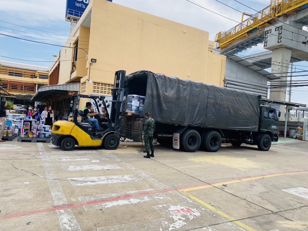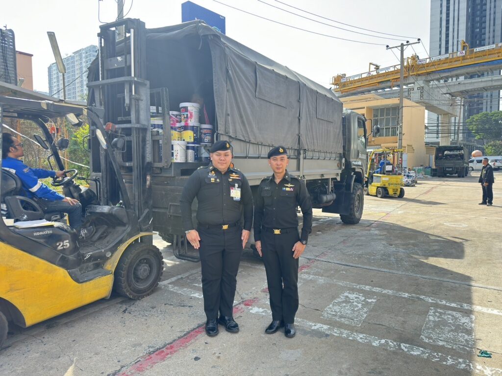 จึงได้ส่งมอบสีน้ำและสีน้ำมัน สำหรับทาภายในและภายนอกอาคารให้กับหน่วยทหารต่างๆ เพื่อนำไปใช้ประโยชน์ในการ พัฒนา ปรับภูมิทัศน์ ของหน่วย และใช้ในกิจการต่างๆ ของหน่วย รวมถึงช่วยเหลือประชาชนที่ได้รับความเดือดร้อนในพื้นที่รับผิดชอบ ดังนี้