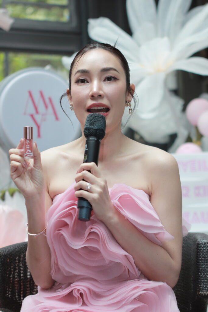 “ก่อนอื่นเมย์ขอพูดที่มาของเครื่องสำอาง M A Y(เอ็มเอวาย) แบรนด์นี้ถือกำเนิดขึ้นมาจากความเชื่อที่ว่า ทุกคนมีความสวยเป็นของตัวเอง และด้วยความที่หลงใหลในความงามและการดูแลตัวเอง เมย์จึงได้คิดค้นแบรนด์นี้ขึ้นมา เพื่อส่งต่อความสวยงามให้กับทุกคน เป็นผลิตภัณฑ์เครื่องสำอางคุณภาพสูงในราคาที่เอื้อมถึง และคุ้มค่า เพื่อให้มั่นใจว่าทุกคนสามารถเป็นเจ้าของได้ เมย์ได้มีส่วนร่วมในกระบวนการพัฒนาผลิตภัณฑ์ เพื่อให้มั่นใจว่าทุกผลิตภัณฑ์สอดคล้องและตรงกับความตั้งใจของเมย์ เมย์บอกได้เลยว่าถ้าทำออกมาแล้วไม่ดี เมย์ไม่ทำดีกว่า เพราะฉะนั้นอยากให้ทุกคนมั่นใจได้ว่าของดีจริงๆ”