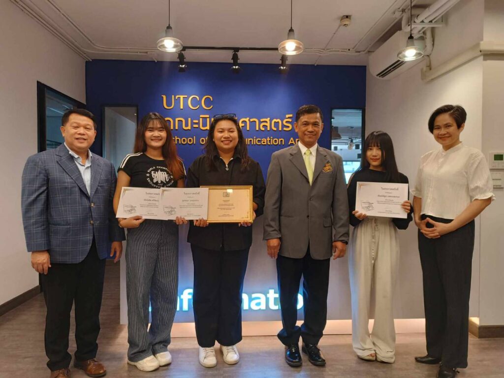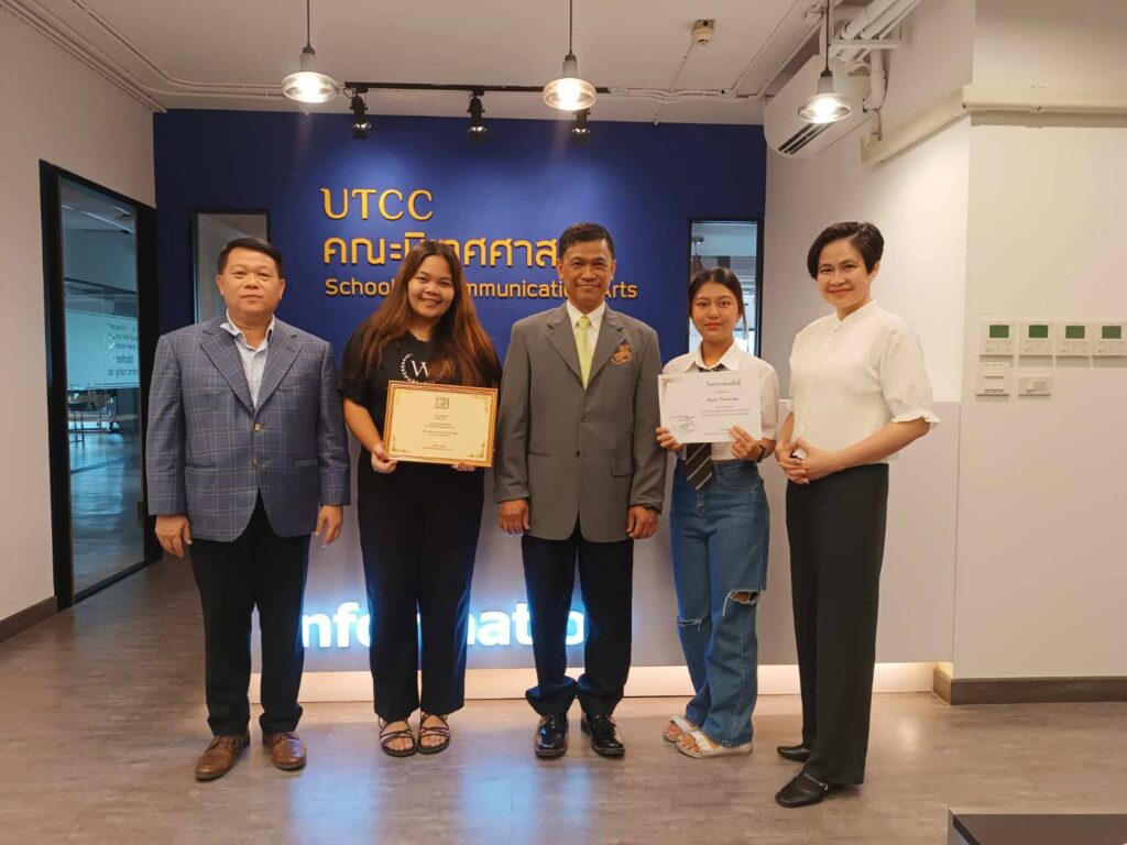 ข่าวราคาบัตรคอนเสิร์ตที่สวนทางกับค่าครองชีพ ของคณะนิเทศศาสตร์ มหาวิทยาลัยหอการค้าไทย และ ข่าว One Day in SAOCHINGCHA ของคณะนิเทศศาสตร์ มหาวิทยาลัยหอการค้าไทย โดยมี ศ.ดร.ไพโรจน์ วิไลนุช คณบดี,ผศ.ดร.อรดล แก้วประเสริฐ และนักศึกษา รับมอบ