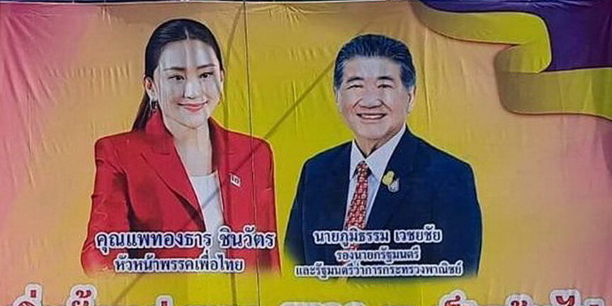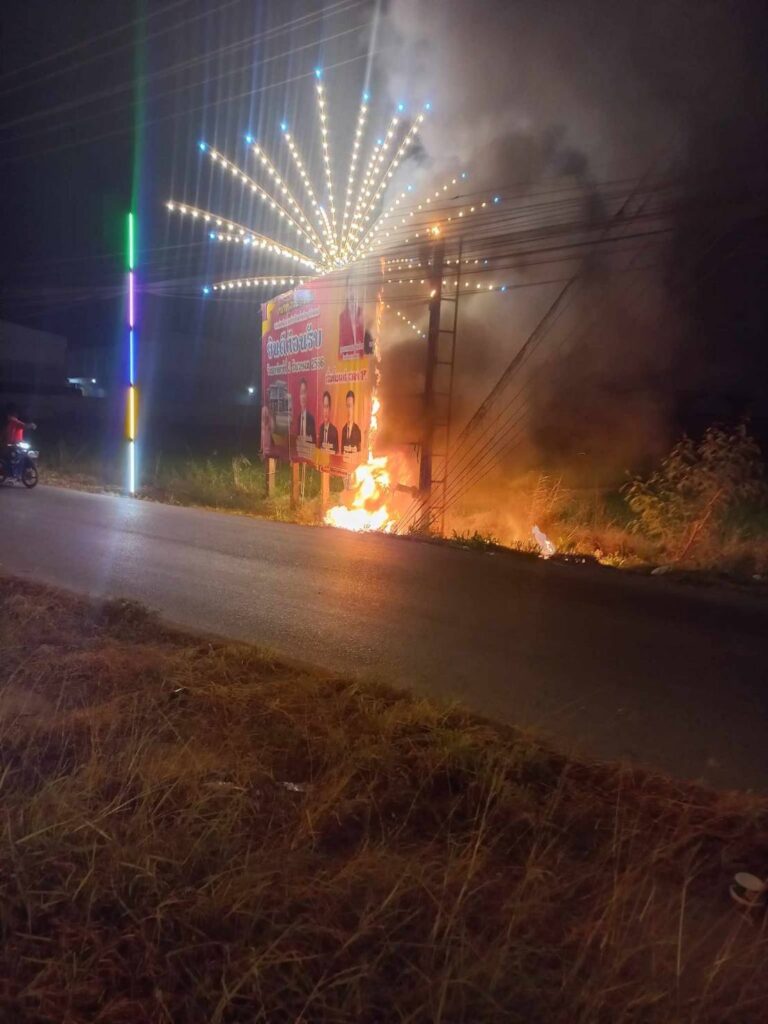 จากการตรวจสอบเป็นป้ายอิงค์เจ็ต ขนาดใหญ่ 12 เมตรคูณ 5 เมตรถูกไหม้เสียหายเกือบหมดบริเวณหมู่4 ตำบลลาดหลุมแก้ว อำเภอลาดหลุมแก้ว จังหวัดปทุมธานี โดยป้ายดังกล่าวเป็นป้ายขนาดใหญ่มีข้อความยินดีต้อนรับ งานทำบุญขึ้นบ้านใหม่ในวันที่3 ธันวาคมนี้ ของนาย อภิชาติและนายธงชัย ภิรมย์พร้อม (เจ้าภาพ) มีรูป คุณแพรทองธาร ชินวัตร หัวหน้าพรรคเพื่อไทย และ นายภูมิธรรม เวชยชัย รองนายกฯรัฐมนตรี และรัฐมนตรีว่าการกระทรวงพาณิชย์ แถวล่างจากด้านซ้ายมีรูป นายสุรพงษ์ อึ้งอัมพรวิไล ที่ปรึกษารัฐมนตรีช่วยคมนาคม , นายผล ดำธรรม ผู้ว่าราชการจังหวัดสมุทรสาคร , นาย นายศุภชัย นพขำ ผู้ช่วยเลขานุการรัฐมนตรีว่าการกระทรวงมหาดไทย , นายชาญ พวงเพชร อดีตนายกองค์การบริหารส่วนจังหวัดปทุมธานี และเป็นรองประธานจัดงานขึ้นบ้านใหม่ และนายสุริยะ ภิรมย์พร้อม นายกองค์การศบริหารตำบลลาดหลุมแก้ว (บิดา)เจ้าภาพเจ้าหน้าที่ดับเพลิงได้ฉีดน้ำดับไฟตรวจสอบให้ดังกล่าว ได้ถูกไฟไหม้เกือบทั้งผืนมีรูปเพียงนายธวัชชัยอึ้งอำพรวิไลคนเดียวเท่านั้นนอกนั้นถูกไฟไหม้หมด