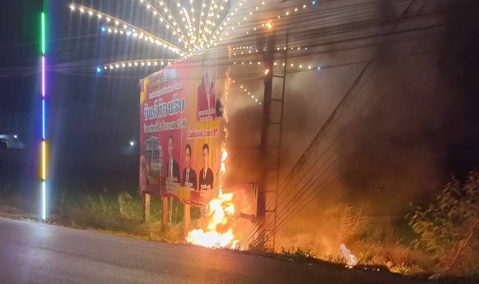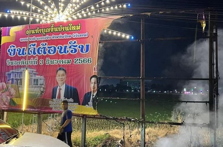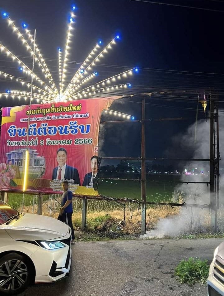 วันที่ 2 ธันวาคม 2566 ผู้สื่อข่าวรายงานว่า เมื่อกลางดึกวันที่ 1 ธันวาคม 2566 ที่ผ่านมา เจ้าหน้าดับเพลิงจากองค์การบริหารส่วนตำบลลาดหลุมแก้ว ได้รับแจ้งเกิดเหตุไฟไหม้ป้ายต้อนรับ คุณอุ้งอิ่งและผู้บริหารพรรคเพื่อไทยที่จะมาร่วมงานขึ้นบ้านใหม่ในวันที่ 3 ธันวาคมนี้ โดยทางการเมืองมีการคาดว่าอาจจะเป็นการจัดงานเพื่อเปิดตัว ว่าที่ผู้สมัครชิง ตำแหน่งนายกองค์การบริหารส่วนจังหวัดปทุมธานีแข่งกับพลตำรวจโทคำรณวิทย์ ธูปกระจ่าง นายกปัจจุบัน ประธานกลุ่มคนรักปทุม จึงทำให้ มีเสียงวิพากษ์วิจารณ์ต่างๆกันไปจากเหตุการณ์ไฟไหม้ป้ายครั้งนี้
